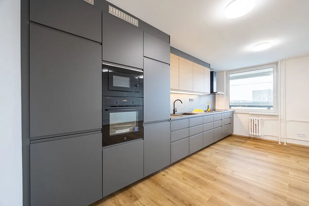 - nová kuchyňská linka se spotřebiči (značková elektrická trouba, myčka, mikrovlnná trouba, indukční deska, digestoř, osvětlení, dřez)