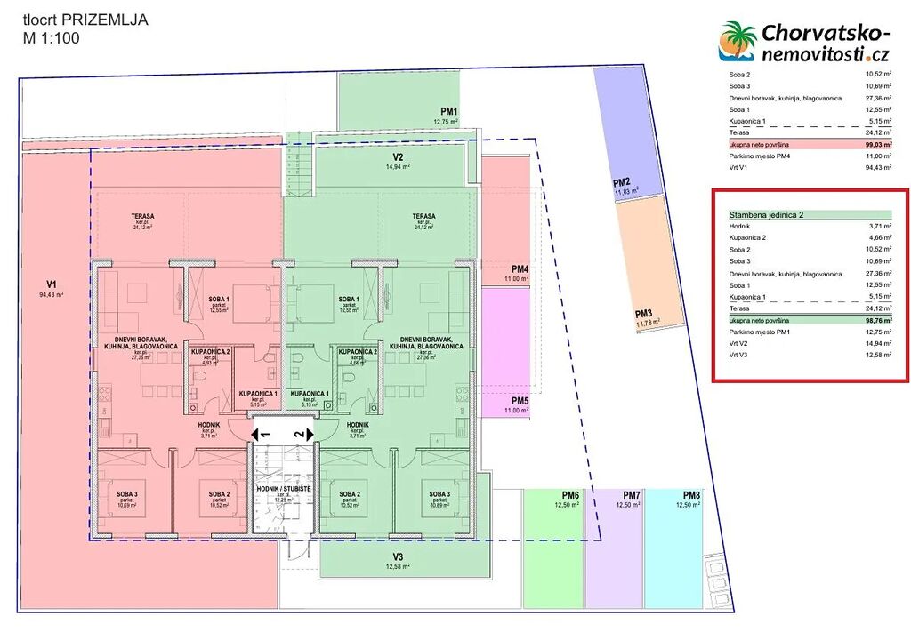 Prodej třípokojového bytu (S5) o rozloze 87,77 m2 v prvním patře novostavby v Povljaně