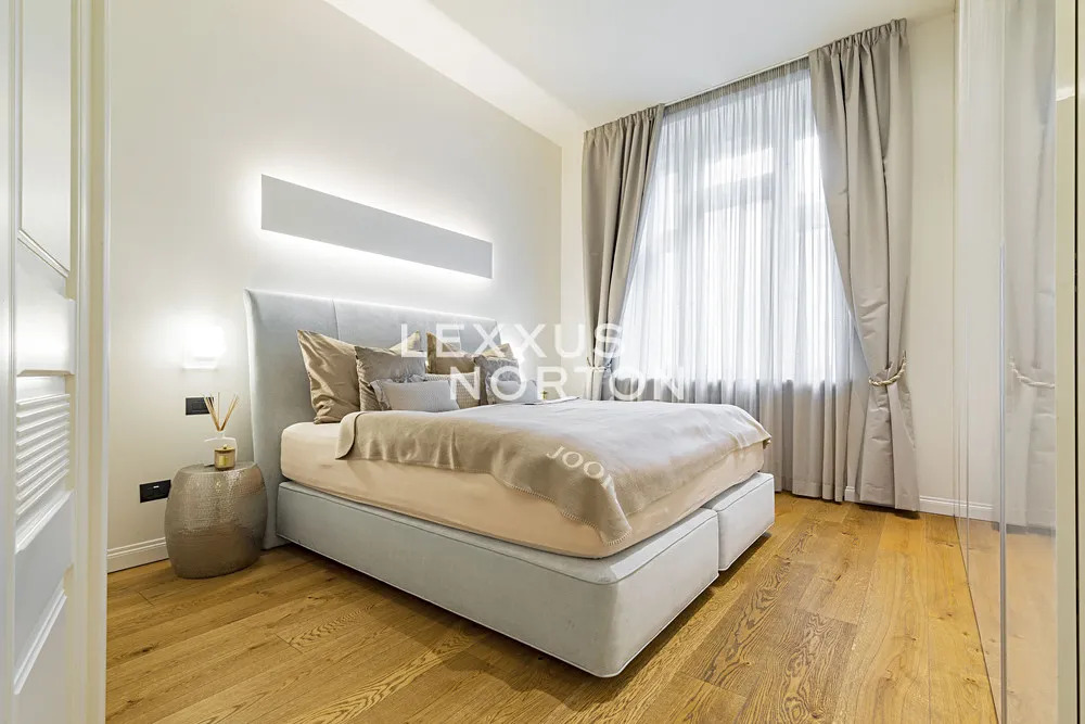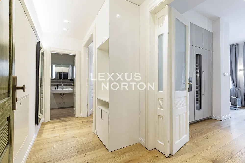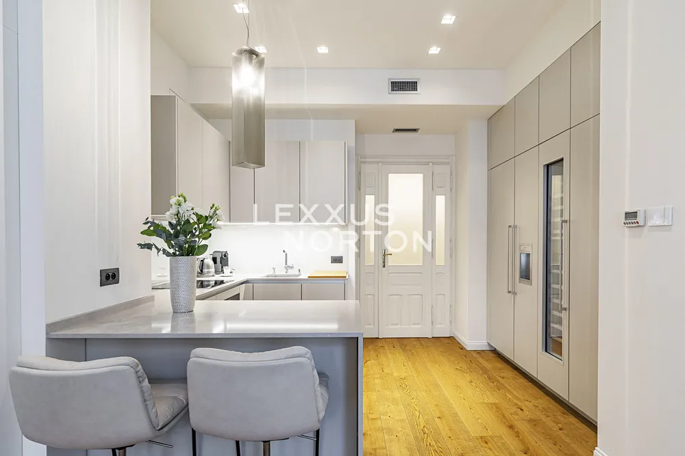 Kuchyňský kout je vybaven prémiovou kuchyňskou linkou Poggenpohl a špičkovými spotřebiči Gaggenau a Siemens, které představují to nejlepší z německé kvality a designu.