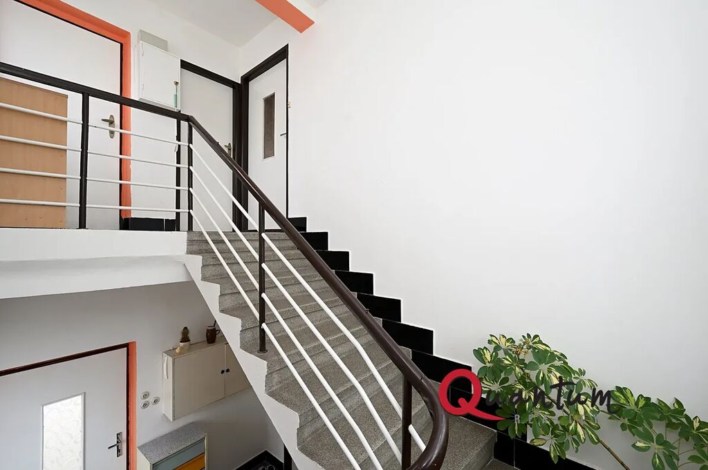 Byt má vstup přes společné schodiště a je plně zařízený.