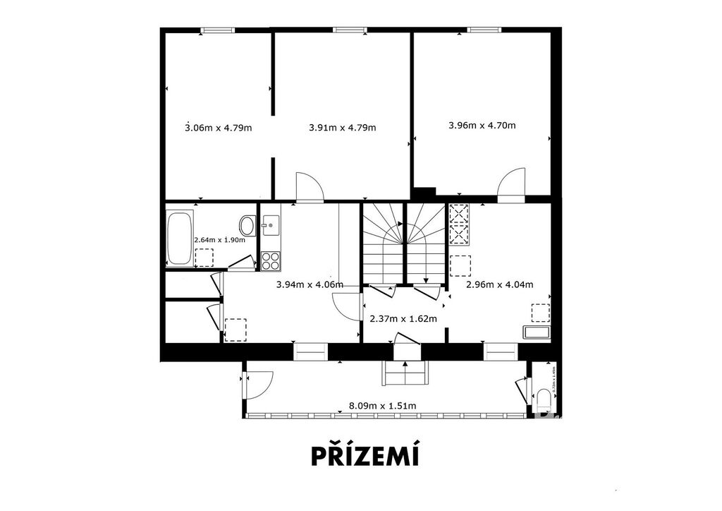 - Prostorný půdní prostor vhodný k vybudování bytové jednotky