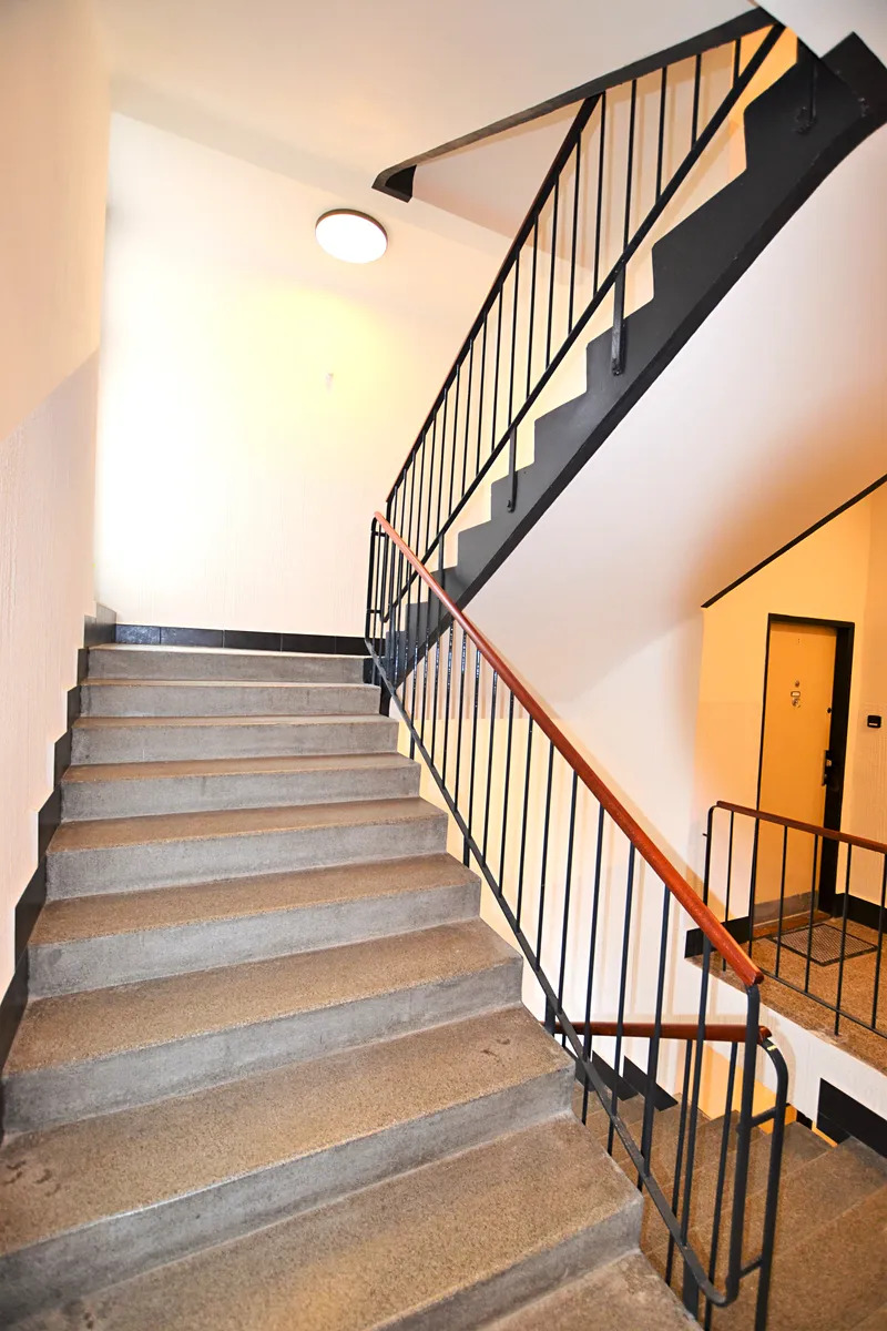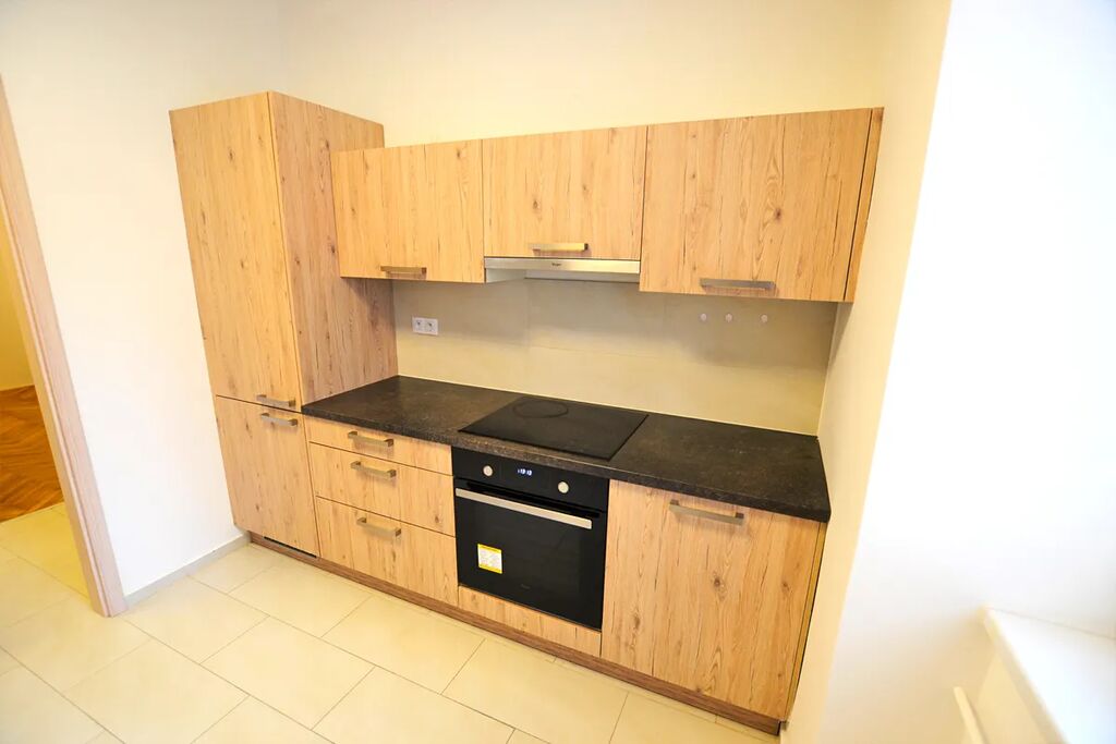 Dva prostorné neprůchozí pokoje s perfektně repasovanými a stylovými parketami, velká hala, kuchyně s moderní linkou s el. varnou deskou, s vestavěnu myčkou a pračkou, koupena se sprchovým koutem, samostatné WC. Komora v bytě, sklepní kóje v 1.PP.