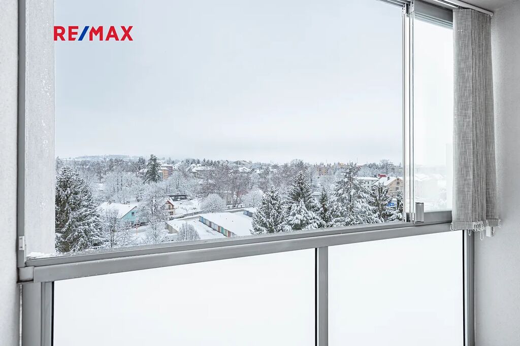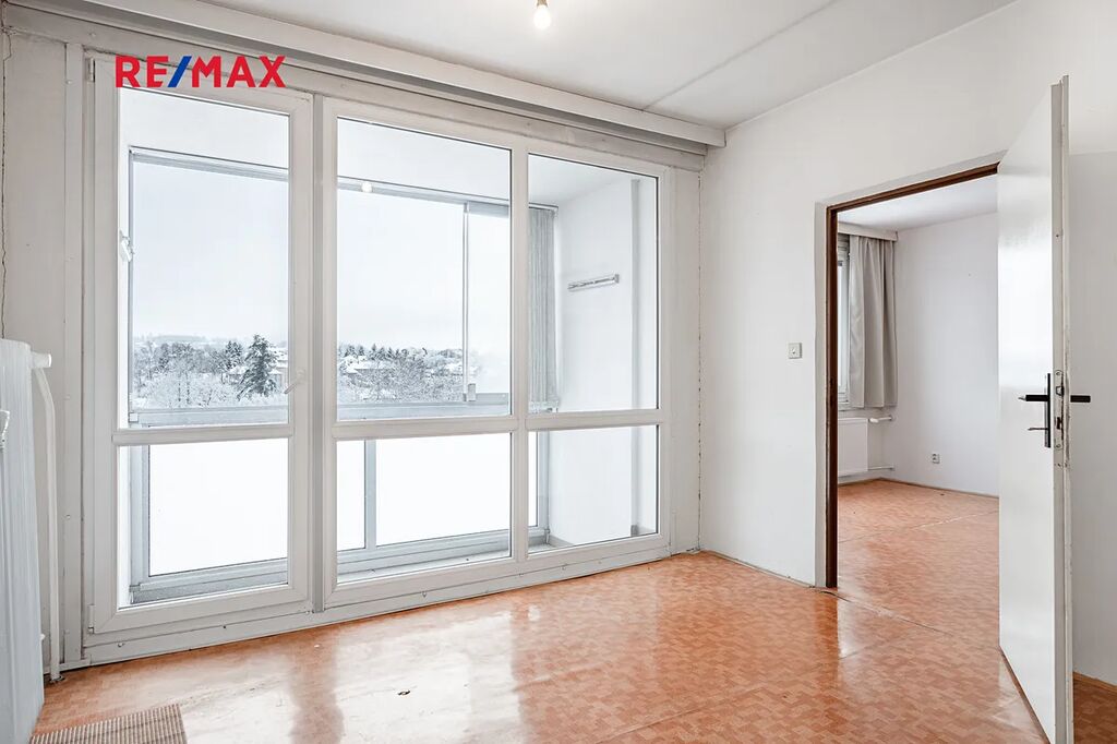 Nabízím prostorný byt 4+1 v posledním 8. patře panelového domu po kompletní revitalizaci (střecha, výtah, okna, stoupačky, fasáda, atd). Užitná plocha 76,3 m² + zasklená lodžie 3,2 m² a sklepní kóje. Byt je v původním stavu, takže umožňuje úpravu dispozice nebo dvougenerační řešení – v minulosti byly dva obývací pokoje odděleně užívány.