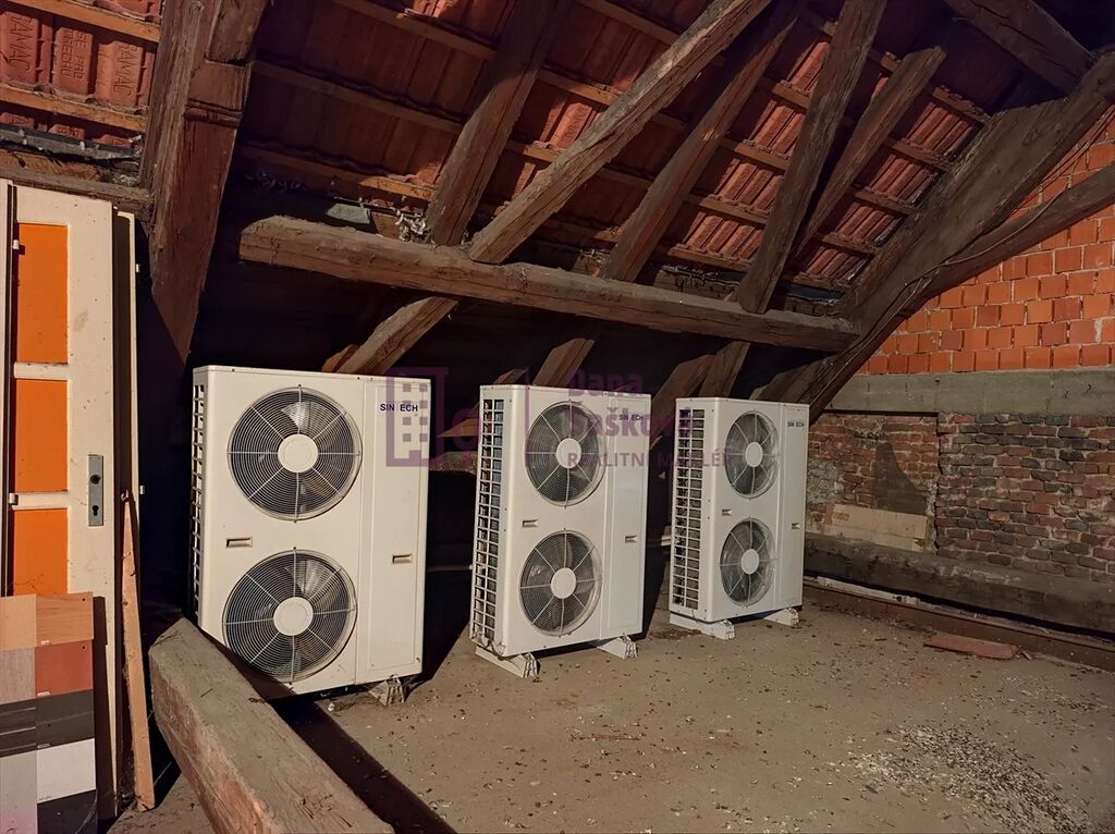 Vytápění řešeno el. akumulačními kamny, v prostorech je také rozvedena vzduchotechnika, ohřev vody řešen bojlerem.
