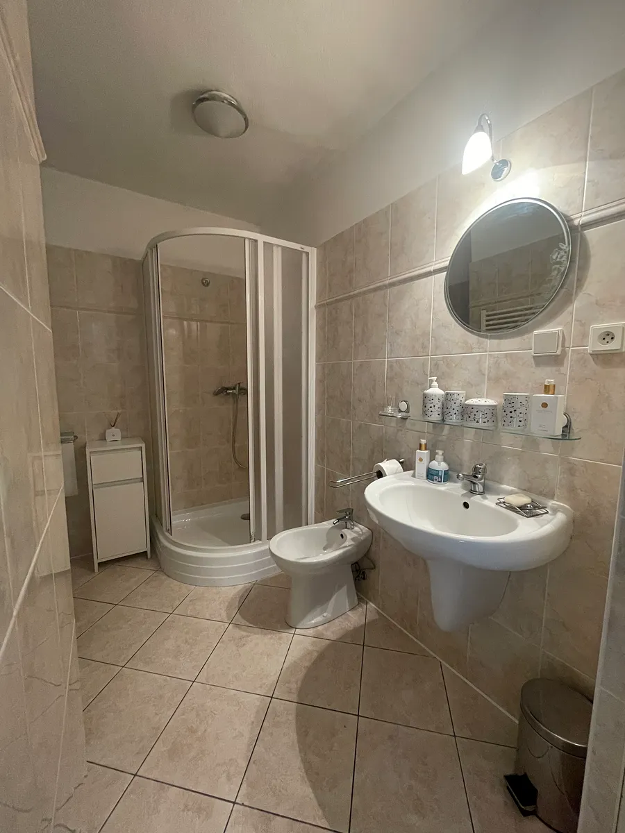 Samotný dům má podlahovou plochu 865 m² a je kompletně podsklepený. V přízemí vás přivítá kuchyně se všemi spotřebiči – velká americká lednice, myčka, sklokeramická deska, elektrická trouba, mikrovlnná trouba – a velkým jídelním stolem. Kuchyně plynule navazuje na útulný obývací prostor s krbem, který vytváří příjemnou atmosféru domova. V 1. nadzemním podlaží jsou tři prostorné ložnice a jedna menší místnost vhodná jako dětský pokoj, šatna nebo pracovna. K dispozici je také koupelna s rohovou vanou, toaletou a vstupem na půdu.
