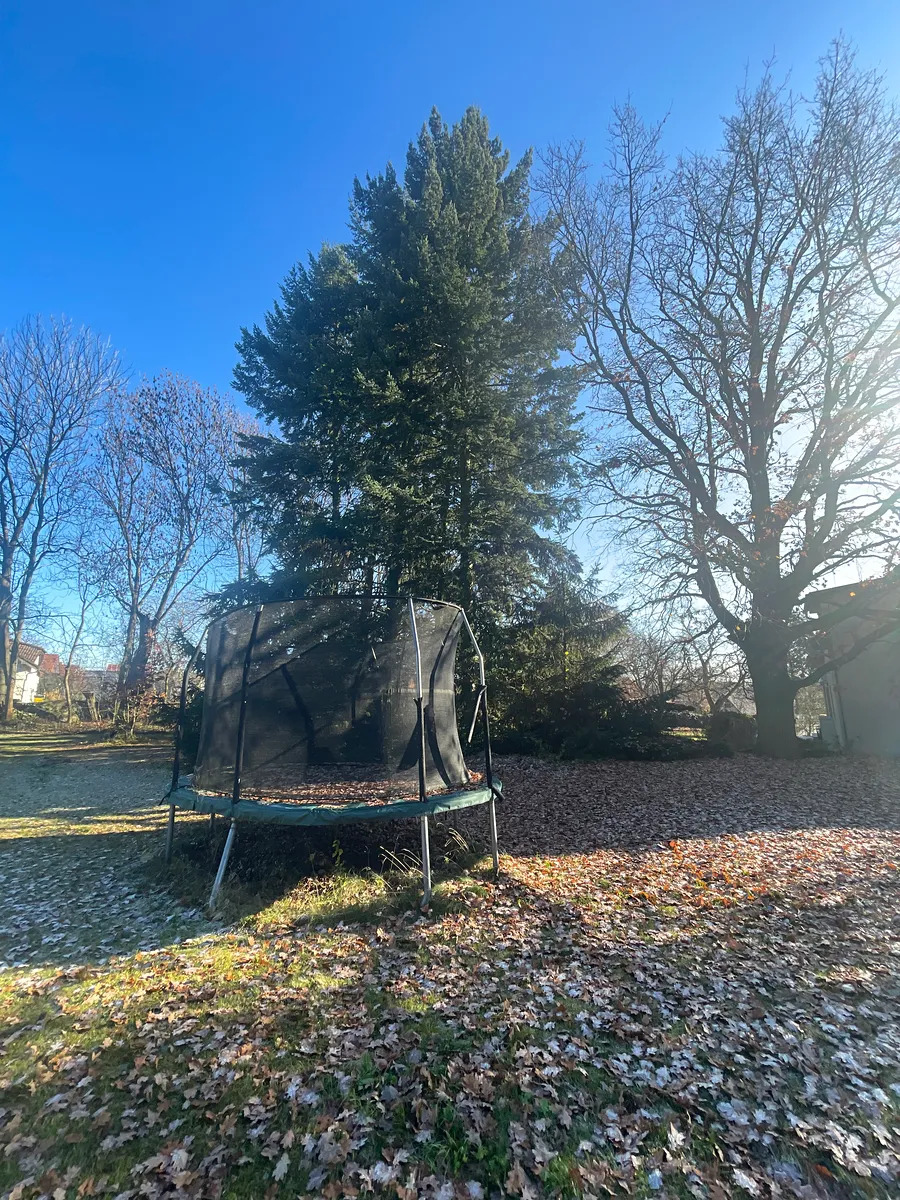 Tento výjimečný rodinný dům k pronájmu ve Zvoli nabízí vše, co si můžete přát – prostor, klid, přírodu i perfektní zázemí pro rodinu. Na nádherném pozemku o rozloze 2 904 m² stojí tři samostatné stavby: hlavní dům, garáž a praktická kůlna. Celý pozemek je osázen vzrostlými stromy, pečlivě udržovaný a poskytuje dokonalé soukromí. Děti si zde užijí velkou hrací plochu i trampolínu, dospělí ocení prostornou terasu s posezením, odkud je krásný výhled do zeleně a stromořadí.