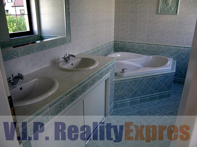 Vila je součásti vilového komplexu "Villas Šárka" v těsném sousedství The International School of Prague www.isp.cz , v blízkém okolí je základní i mateřská škola, zdravotní středisko, obchody, sportovní hala a tenisové centrum, Golf klub, přírodní rezervace Divoká Šárka. Veškerou další infrastrukturu poskytuje nedaleké centrum Dejvic. V uzavřeném areálu se nachází 7 luxusních vil, každá má svou zahradu a vyhřívaný bazén. Popis domu: • Obytná plocha domu 270 m2 • 4 ložnice z toho dvě s vlastní koupelnou ( rohová vana, bidet, umyvadla, WC) • Další koupelna ( sprcha, bidet, umyvadla), a oddělené WC na chodbě v 1. patře • WC s umyvadlem v přízemí • Vybavená kuchyň: sklokeramická plotna AEG, horkovzdušná trouba AEG, myčka nádobí AEG, lednice s mrazákem, odsávač par. • Prádelna: pračka AEG, sušička AEG. • Obývák s krbem a terasou. • Satelitní - anténní rozvod do všech obytných místností vč. kuchyně a na terasu. • Dvě telefonní linky - rozvod po celém domě. Možno zřídit ISDN / ADSL • Garáž pro dva vozy, vrata a vjezdová brána na dálkové ovládání. • Vytápění: plynový kotel – teplovodní podlahové v celém domě. • Zabezpečovací zařízení v celém domě, 3 ovládací místa -1. patro, vchod, garáž, s možností vypínat jednotlivé zóny ( noční režim atd.). Připojení na pult centrální ochrany. • Videotelefon propojen s vchodem a vjezdem do areálu. • Automatické zavlažování zahrady. • Na zahradě bazén 5x3x1,5 m: podvodní osvětlení / el. vyhřívání / zařízení pro plavání proti proudu vody / pohodlné schody / plachta na zakrytí / písková filtrace s dávkovačem chemie a automatikou. • Dům postaven z cihel, jsou použita dřevěná eurookna a je provedeno kvalitní zateplení celé budovy, atd. • Zahradnické a bazenářské služby jsou zajištěny • V uzavřeném areálu o rozloze 5000 m2 je umístěno 7 domů, každý dům má vlastní zahradu.