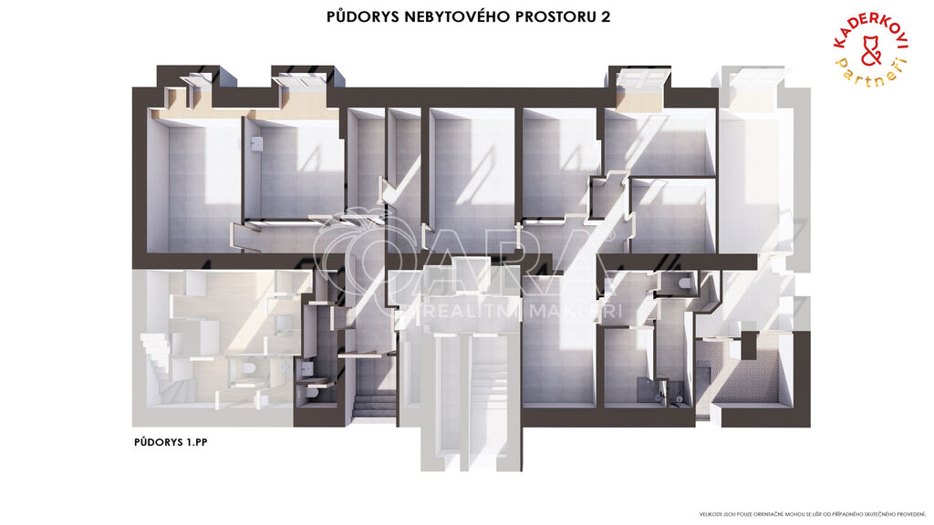 Celková plocha je přibližně 172,9 m² a zahrnuje i sociální zázemí a další příslušenství, které zajišťují pohodlné fungování provozu. Prostor je aktuálně využíván jako kosmetické studio, sklad. Nebytová jednotka je umístěna v 1.PP.