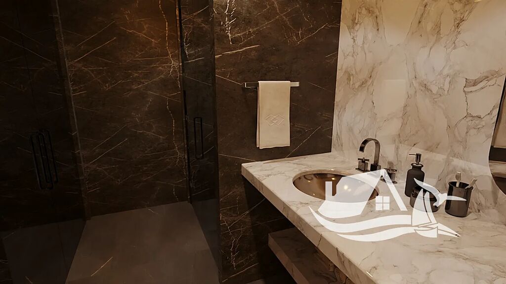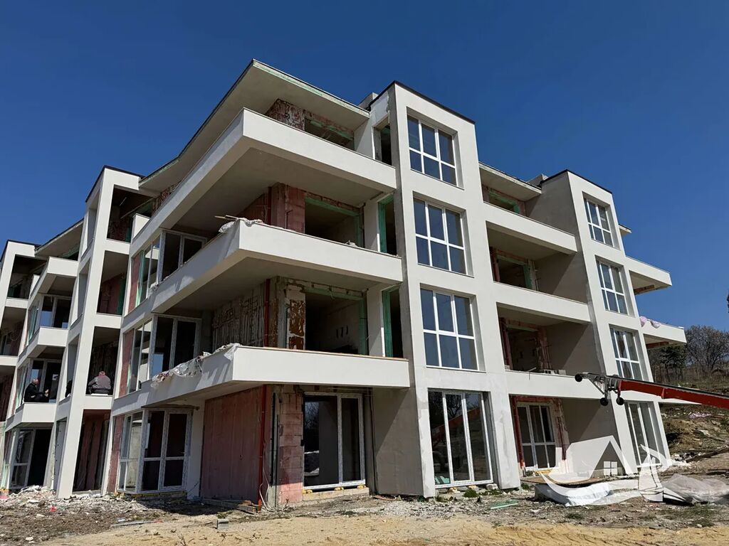 Apartmán o velikosti 63,93 m² se nachází v 1. patře, orientovaný na východ s krásným výhledem na moře. Prodává se ve fázi hrubé stavby – omítky, rozvody, elektroinstalace, vstupní dveře a plastová okna Winkhaus. Nabízíme možnost dokončení na klíč podle vkusu klienta. Fotografie interiérů slouží jako inspirace.