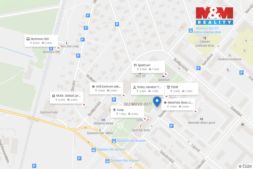 K bytu náleží sklep, k dispozici jsou i společné prostory a soukromý dvůr. Parkování je možné u nedaleké autobusové zastávky. Lokalita je klidná, s výbornou dostupností škol, obchodů, banky, pošty i dalších služeb.