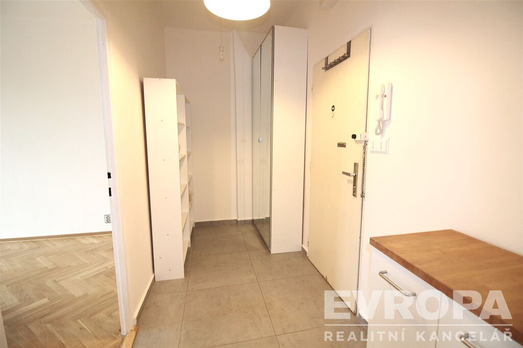 Nabízíme k pronájmu kompletně zrekonstruovaný byt dispozice 2+1, plocha 42m2, nachází se v 5. nadzemním podlaží. Ve vstupní místnosti předsíni je zároveň prostor pro kompletně zařízenou funkční kuchyňskou linku, která je vybavená skl. deskou, el. troubou, mikrovlnou troubou a myčkou nádobí. Tato dispozice tak nabízí vstup do dvou samostatných pokojů, prostorného obývacího pokoje s francouzským oknem a rovněž neprůchozí ložnice. Dále koupelna s menší vanou, samostatná toaleta a komora s pračkou. Byt je světlý s výhledem do korun stromů a orientací na slunný západ. V bytě jsou plovoucí podlahy, parkety a dlažba, plastové okna, nové štuky, elektro a vodoinstalce, dálkové vytápění s dobrou regulací vlastních nákladů na spotřebu. Perfektní spojení do centra Prahy, v místě nadstandardní občanská vybavenost, obchody, večerka, restaurace, OC Eden, Tesco, obchody a služby v pěší vzdálenosti, sportoviště, parky a zeleň v okolí.