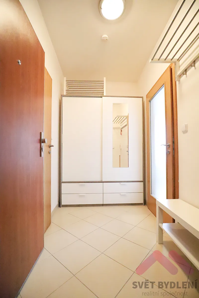 Ve výhradním zastoupení majitele nabízíme byt 1+kk, který se nachází v 8. patře cihlové novostavby. Byt je částečně zařízený: kompletní kuchyňská linka vč. myčky, lednice, sklokeramické varné desky s troubou, prostorná šatní skříň v předsíni, botník, v koupelně skříňka se zrcadlem, pračka a WC zvlášť. K bytu náleží vlastní parkovací stání v podzemní garáži a sklep. Velmi dobrá dopravní dostupnost - zastávka tramvaje se nachází přímo u domu.