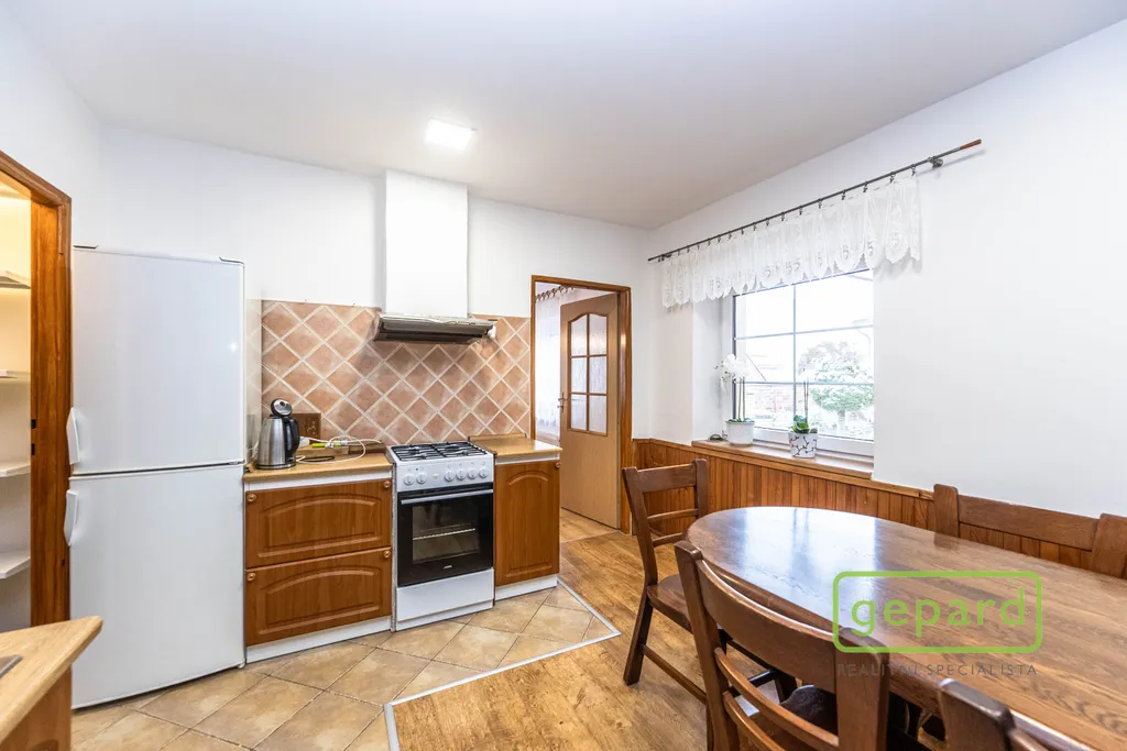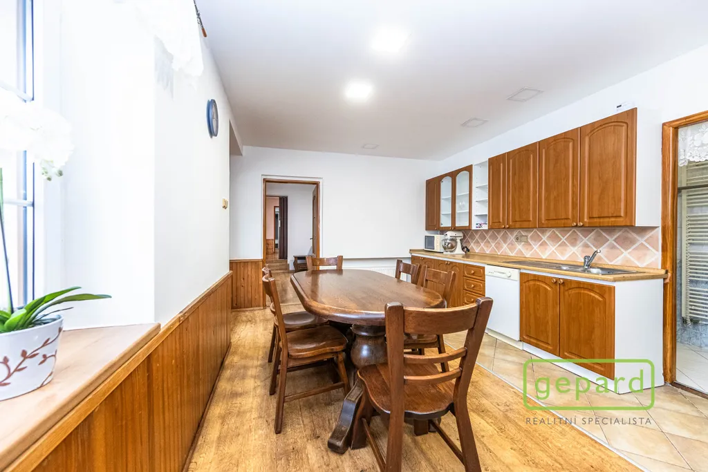 REZERVACE - Realitní společnost Gepard Vám nabízí k pronájmu rodinný dům o zastavěné ploše 113 m2 a dispozicí 3+1 s verandou, šatnou, prádelnou a sklepem. Dům prošel postupnou rekonstrukcí cca před 8-12 let, je stále vytápěn a nyní čeká na nového nájemníka. Je zateplený a okna jsou plastová. Celková velikost pozemku je 491 m2. Dům je vytápěn plynovým kotlem, který rovněž zajišťuje ohřev užitkové vody. Vstup do domu je verandou, ze které je vstup na samostatnou toaletu a do hlavní části domu. Kuchyně s jídelnou je kompletně vybavena kuchyňskou linkou vč. spotřebičů, je zde i praktická komora na potraviny. Koupelna je vybavena prostorným bezbariérovým sprchovým koutem, umyvadlem a topným žebříkem. Obývací pokoj je vybaven nábytkem vč. TV. Další pokoj je vlevo od kuchyně, průchozí a za ním se nachází prostorná ložnice s šatnou. Odtud se dostaneme do přístavby, kde je prádelna a vstup do sklepa. Možnost parkování na pozemku u domu. Garáž není součástí pronájmu.