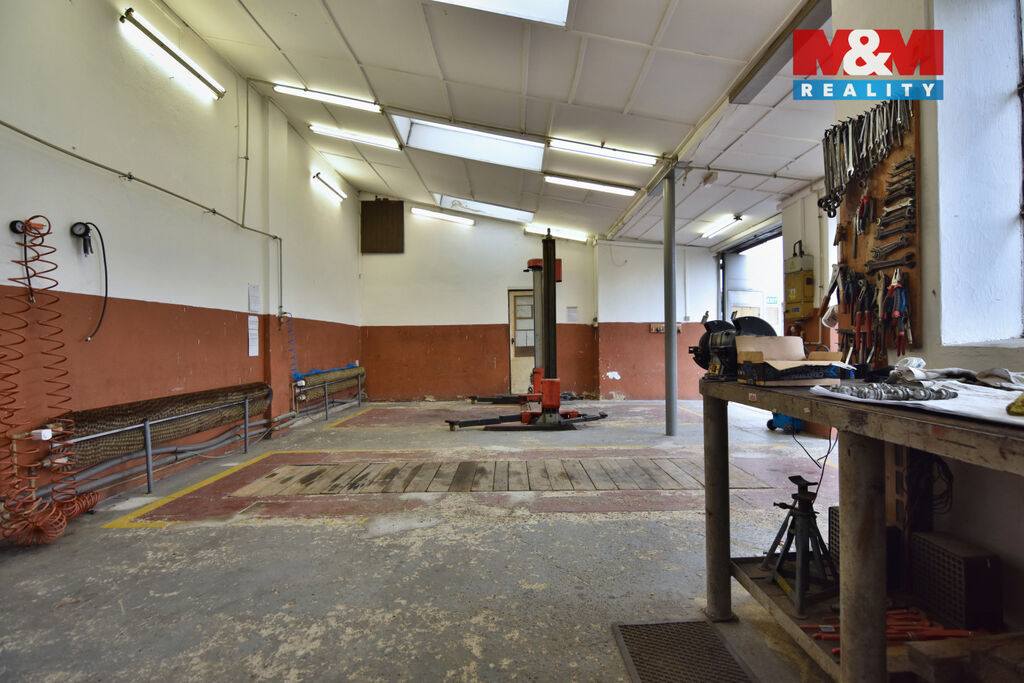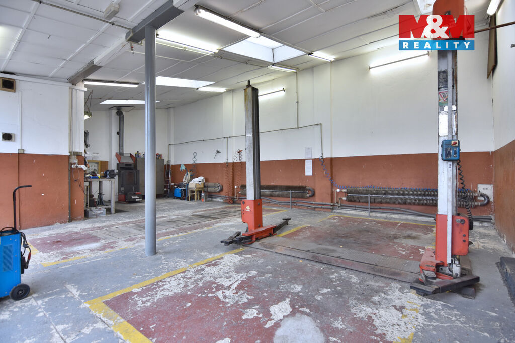 Obchodní prostor – 232 m², kancelář – 22 m², dílna 1 – 65 m²: hever, montážní jáma, olejový kotel, umyvadlo, vstup na půdičku, světlíky. Dílna 2 – 58 m²: myčka, umyvadlo, vstup na půdu.