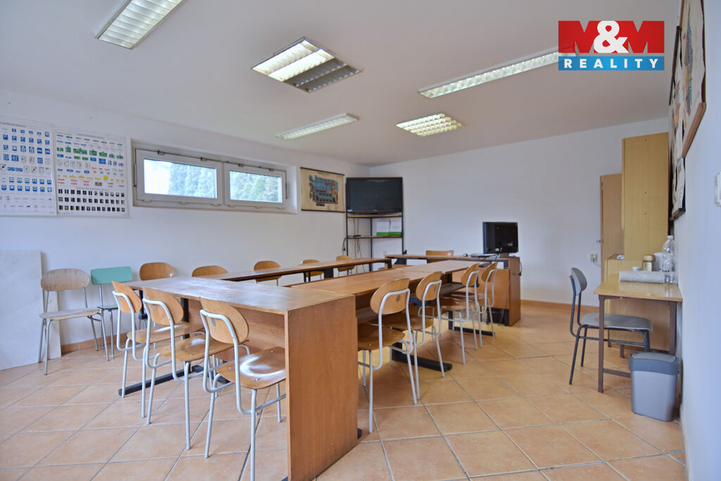 Kotelna – 9 m²: plynový kotel, elektrický bojler, kotel na tuhá paliva, kompresor, sklad, sociální zázemí – 29,4 m² (3× WC, sprchy, šatna, kuchyň).