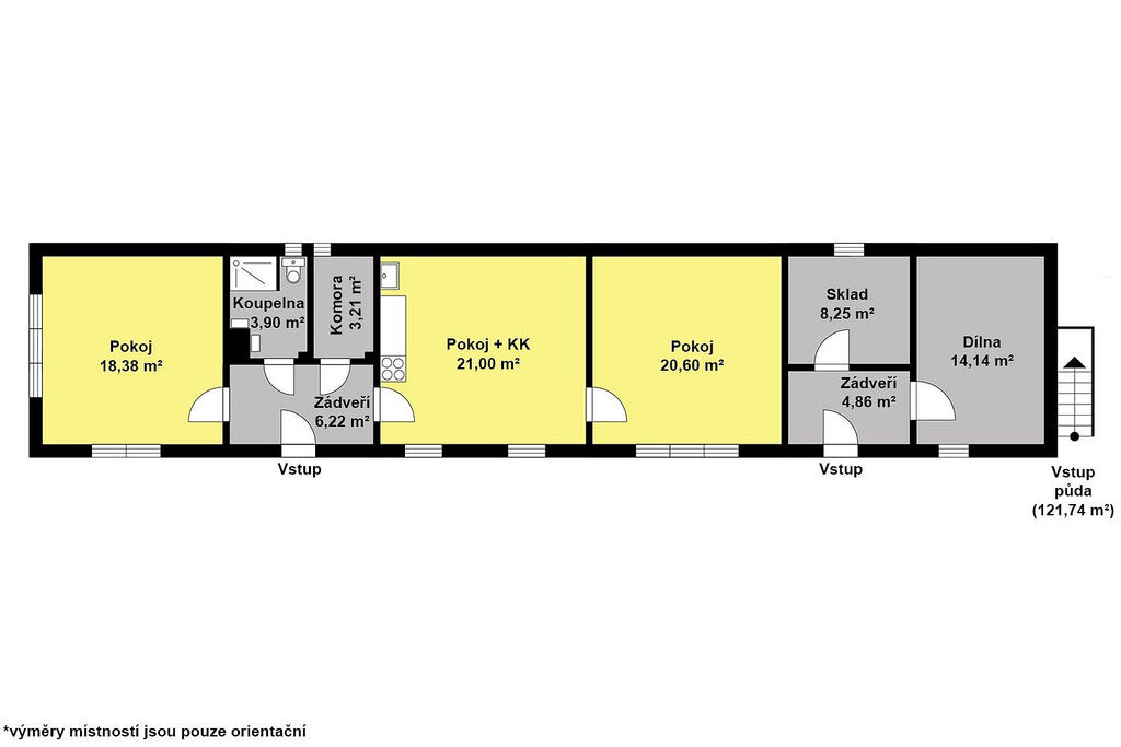 Přesné dispozice domu jsou znázorněny v půdorysu.