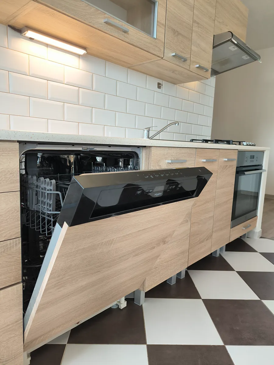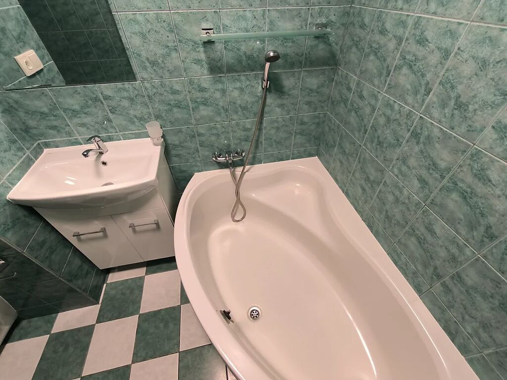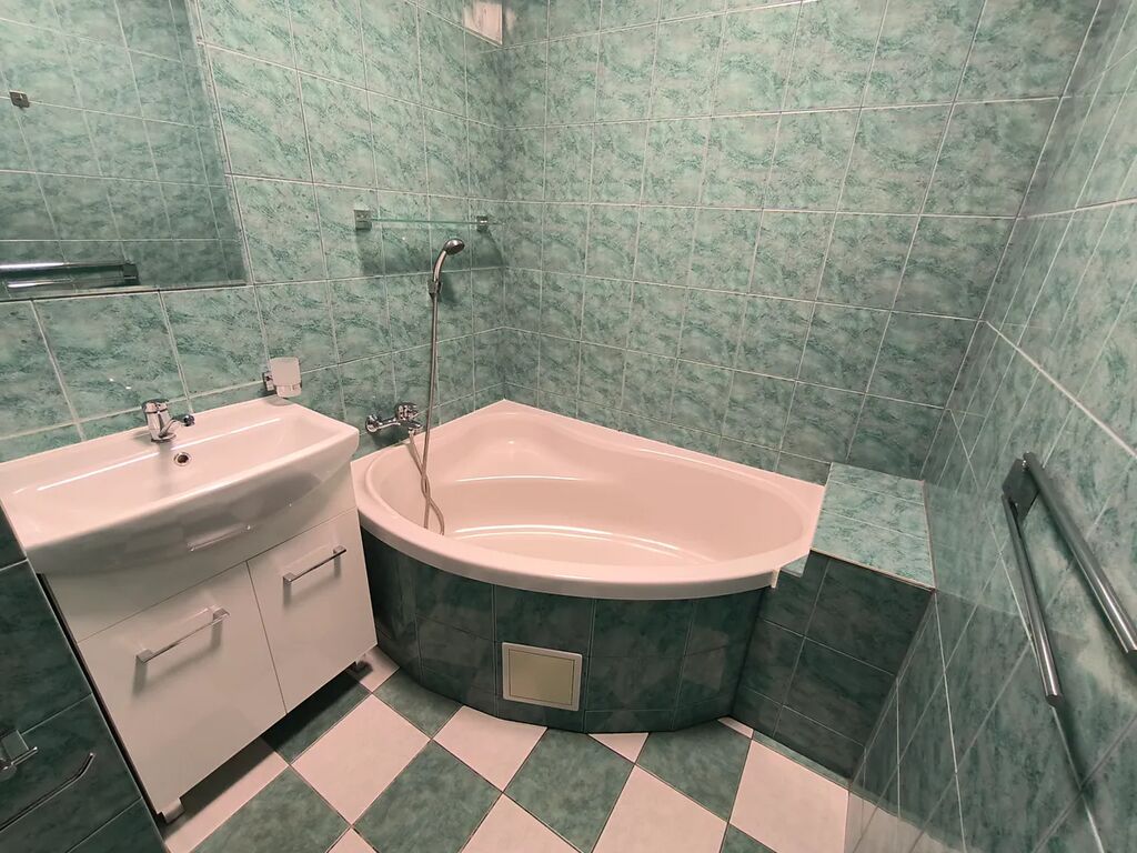 Zděná koupelna s rohovou vanou, umyvadlem a wc. Na podlahách v místnostech jsou vinylové podlahy. Součástí kuchyňské linky je vestavná myčka, elektrická trouba, plynová varná deska a digestoř. Plastová okna se sítěmi proti hmyzu a roletami.