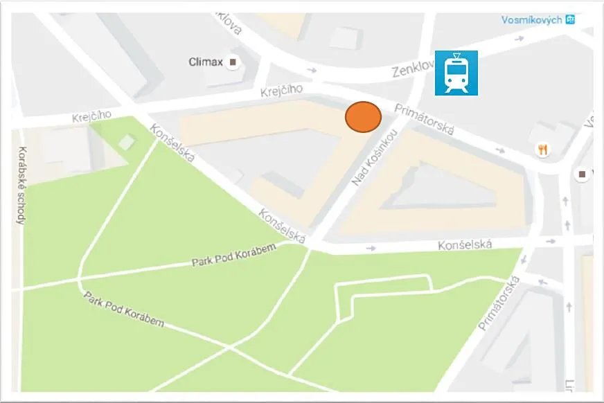 ul. Primátorská tedy s odděleným vstupem pro klienty a solo vstupem pro zásobování, III. vstup je potom