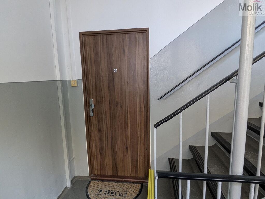 Byt se nachází v 1. patře (2. NP s výtahem). Byt je v dobrém stavu, po částečné rekonstrukci. Majitel je ochoten po několika měsících nájemního vztahu vyměnit podlahy, které jsou místy poškozeny. Koupelnová skříňka co je vidět na fotografii v chodbě, nahradí před počátkem nájmu poškozenou skříňku co je nyní v koupelně.