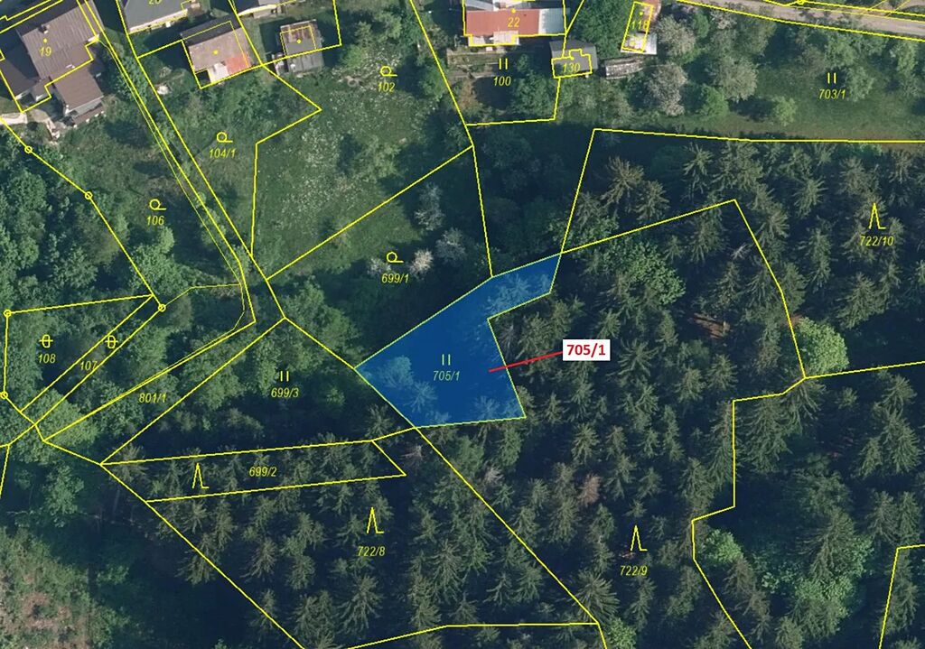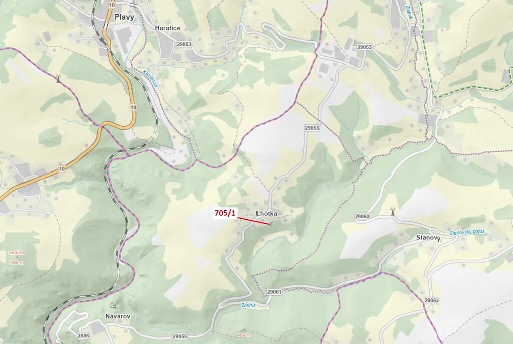 Trvalý travní porost o výměře 438 m2, parcelní číslo 705/1, podíl 1/1, katastrální území Lhotka u Zlaté Olešnice, obec Zlatá Olešnice, obec s rozšířenou působností Tanvald, okres Jablonec nad Nisou, Liberecký kraj.