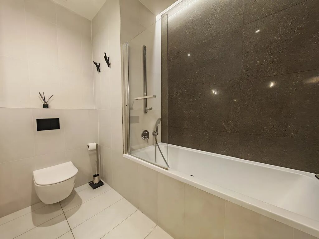 Byt také nabízí moderní smart-home prvky, včetně centrálního LCD panelu pro ovládání domácnosti, klimatizace, rekuperace vzduchu a kamerového zabezpečovacího systému přímo napojeného na recepci.