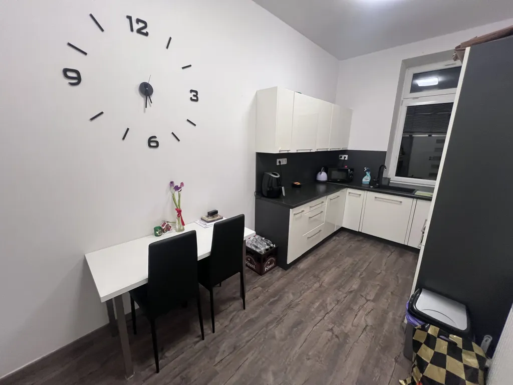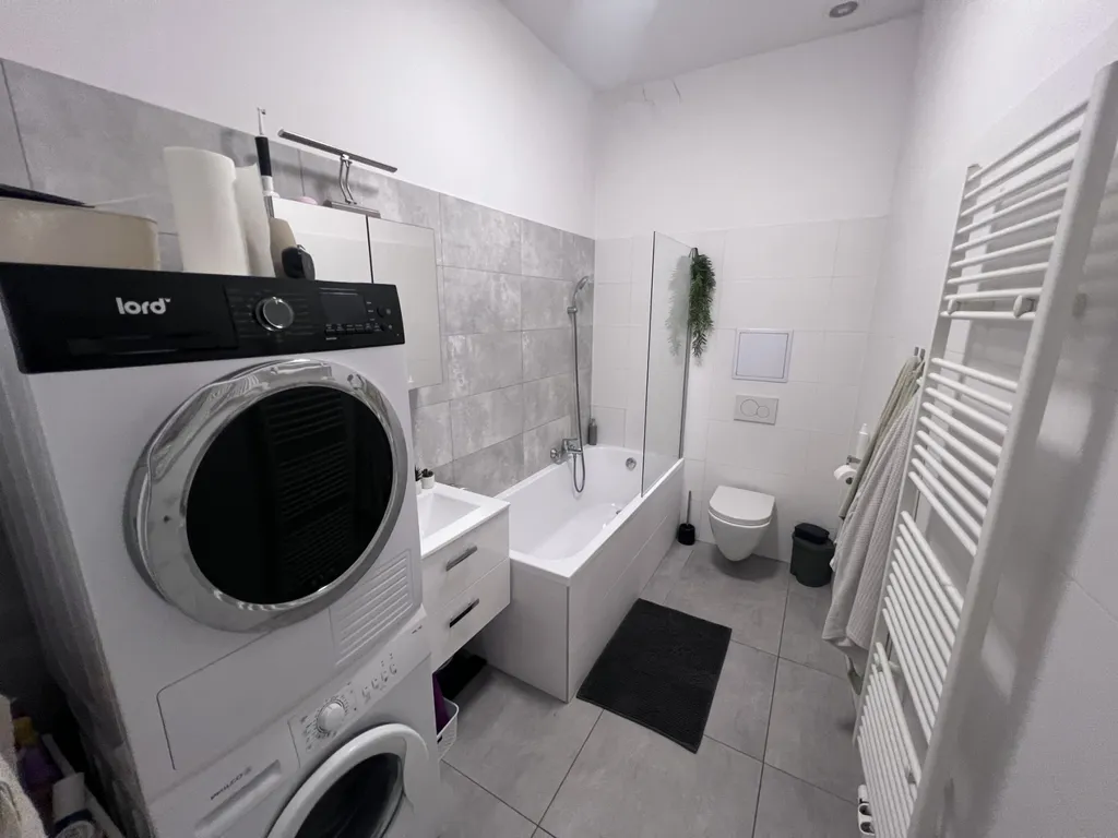 Byt má praktické uspořádání – prostorný obývací pokoj, samostatnou ložnici a kuchyň s kompletně vybavenou linkou (varná deska, trouba, myčka, lednice). Koupelna je vybavena vanou, umyvadlem a toaletou, což ocení zejména rodiny s dětmi či ti, kteří si rádi dopřejí pohodlnou koupel. Díky umístění v přízemí je byt navíc ideální pro ty, kteří preferují snadnou dostupnost bez schodů.