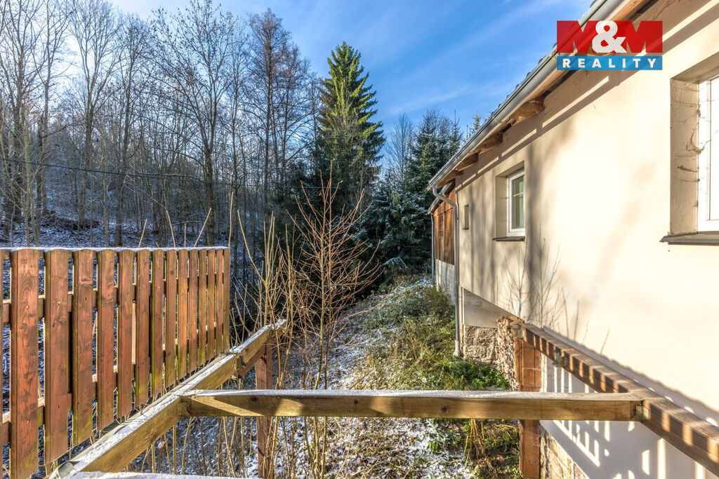 Nabízíme k prodeji krásnou chalupu v horské vesnici Horní Tříč, spadající pod Vysoké nad Jizerou. Nemovitost prošla nákladnou rekonstrukcí a je připravená ihned a bez dalších investic pro nového majitele. V přízemí jsou dvě hlavní místnosti s kachlovými resp. krbovými kamny, terasa, mezonetová ložnice a koupelna s toaletou. V patře byl vybudován vzdušný obývací pokoj, ložnice a koupelna s toaletou. K domu je přistavěna dřevěná stodola s parkováním pro dva vozy. Dům je částečně podsklepený. Zde se nachází dílna s technickou místností a menší sauna. Objekt pojme i velkou rodinu, je vhodný jak k rekreaci, tak k pronajímání, mnoho ski areálů a turistických cílů v těsné blízkosti.