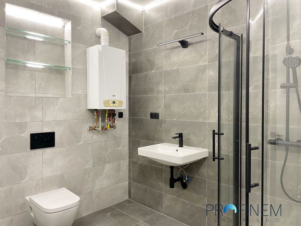 Moderně zařízená koupelna, kde byly použity kvalitní obklady a sanita, nabízí komfortní využívání bez pocitu stísněných prostor. Součástí bytu je také menší místnost mimo byt, která se nachází přes chodbu. Tuto místnost lze využít jako pracovnu, trucovnu či sklad, což zvyšuje variabilitu využití tohoto bydlení. K bytu dále náleží sklep a půdní prostor pro uskladnění nepotřebných věcí. Parkování je pohodlné díky dostatku parkovacích míst před domem. Vytápění a dostatek teplé vody zajišťuje plynový turbokotel, který přispívá k příjemné tepelné pohodě.