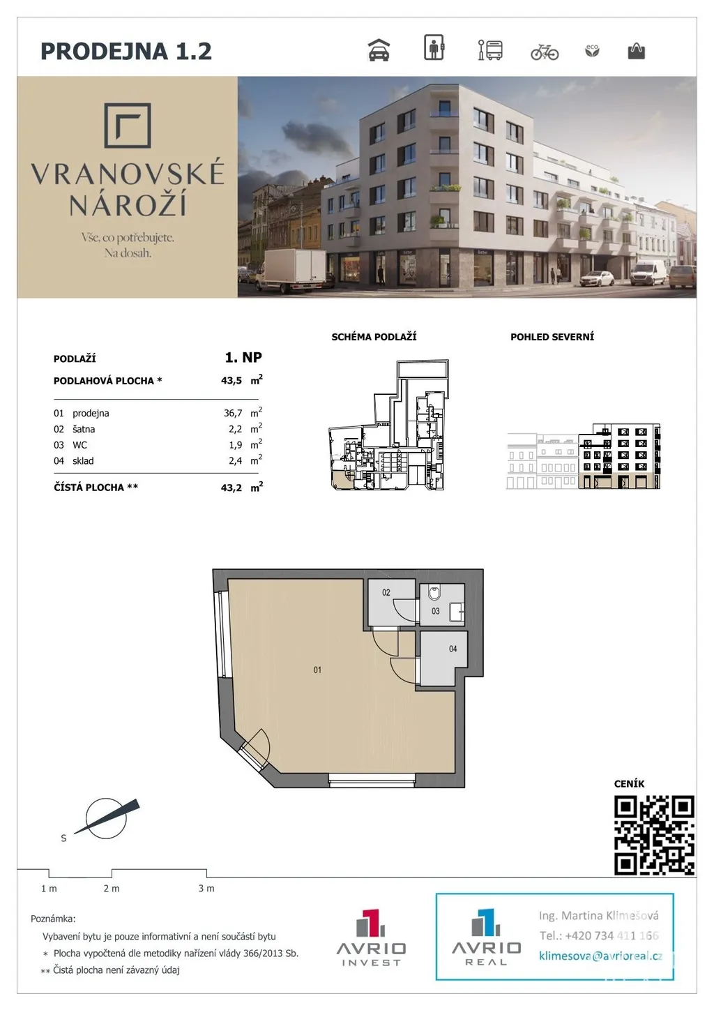 Představujeme vám nárožní komerční prostor o výměře 43 m² se zázemím v novém projektu Vranovské nároží.
