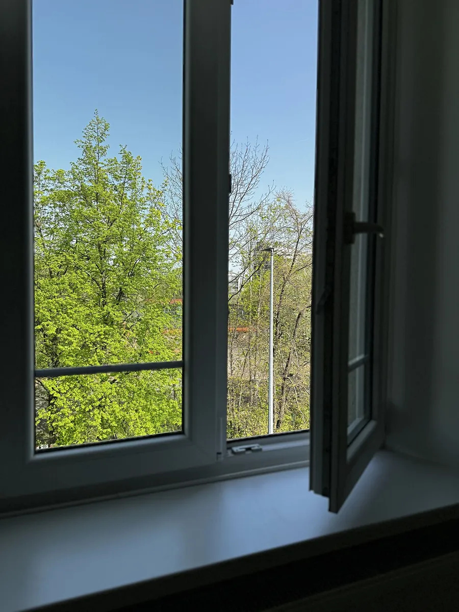 Okna bytu směřují na severní stranu, do ulice, která je díky velkým vzrostlým stromům krásně zelená, klidná a ničím nerušená. Je tak zajištěno opravdu pěkné bydlení v těsné blízkosti veškeré občanské vybavenosti, přitom v zeleni a klidu. Parkování před domem. V mezipatře je možné využívat balkón.