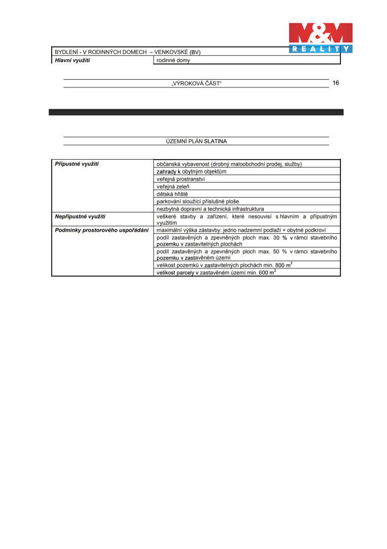 Atraktivní investiční příležitost pro developery: Stavební pozemek o výměře 11.683 m² ve východní části obce Slatina u Velvar, s připravovaným projektem „Obytný soubor Slatina – pozemek č. 901“. Zastavitelná je cca polovina plochy, a to v západní části parcely, která je svažitá od jihu k severu, což umožňuje efektivní terasovité uspořádání domů. Připravená dokumentace pro územní rozhodnutí zahrnuje 8 stavebních parcel, typové rodinné domy se suterénem, podkrovím a terasami, novou technickou infrastrukturu (kanalizace, plynovod, elektřina, vodovod), rozšíření komunikace i veřejné osvětlení. Lokalita leží v přírodním parku okolí Okoře a Budče, mimo záplavová a ochranná pásma, v okolí nové rezidenční výstavby. Výborná investiční pozice díky rychlému dojezdu do Prahy – cca 25 – 30 minut po D7. K dispozici je zpracovaná a projednaná dokumentace pro územní rozhodnutí, která je projednaná se všemi dotčenými orgány a správci sítí.