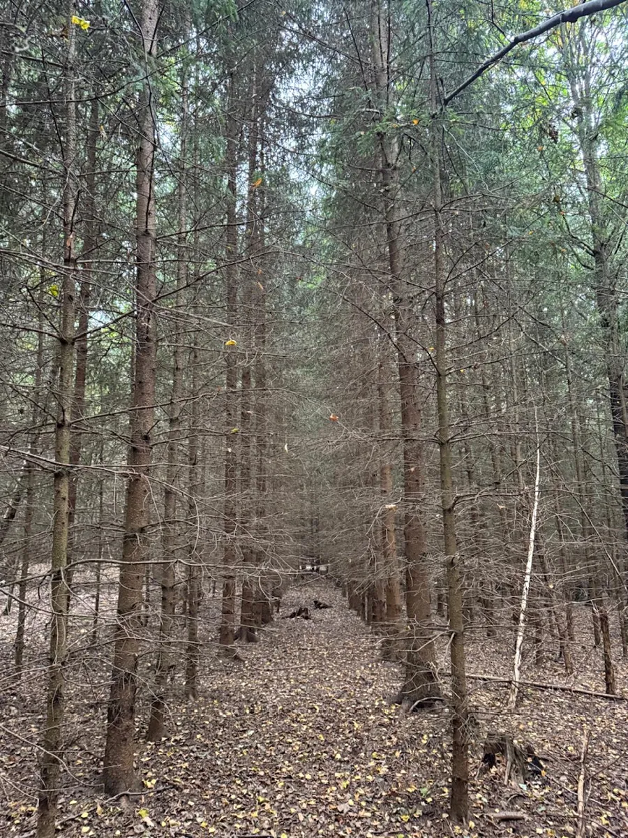 - p.č. 1689/104 vedená jako lesní pozemek o celkové výměře 12 540 m2, vlastníme podíl 1/8 tedy 1 568 m2 (stáří lesa 29 let - zastoupení dřevin smrk, bříza, stáří lesa 19 let - zastoupení dřevin smrk, bříza, dub)