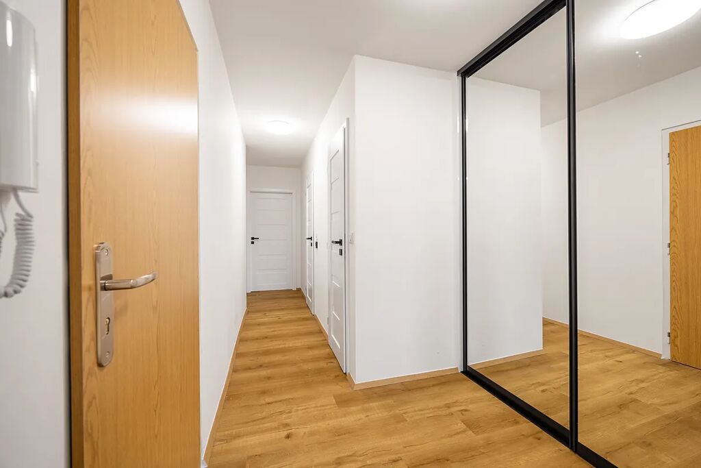 Byt vypadá přesně jak vidíte na fotografiích, nejedná se o vizualizaci. Kuchyně je navržena pro pohodový a rodinný život s dostatkem úložných prostor a je kompletně vybavená spotřebiči (elektrická trouba, myčka, mikrovlnná trouba, indukční deska) a spolu s obývacím pokojem má 31 m2. Koupelna je s vanou, se sprchovým koutem a podlahovým topením, elegantním žebříkem a designovým umyvadlem na skříňce. Dále je zde nová vestavná skříň na míru a prostorný sklep.