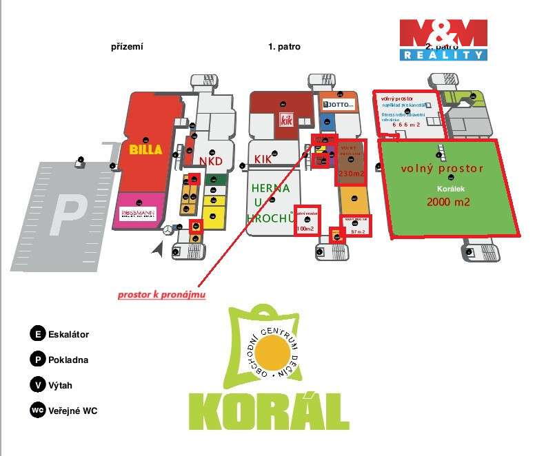 K dispozici je zásobování přes nákladovou rampu a výtah, což výrazně usnadňuje provoz. OC Koral leží v samotném srdci Podmokel, přímo naproti hlavnímu vlakovému nádraží a v těsné blízkosti zastávek MHD i meziměstských autobusů. Lokalita nabízí výbornou průchodnost a vysokou koncentraci lidí po celý den.