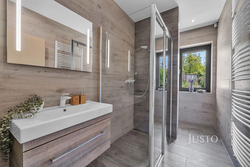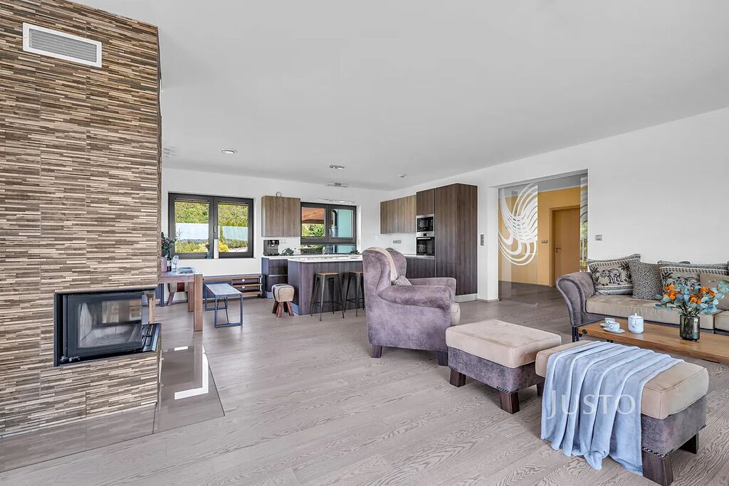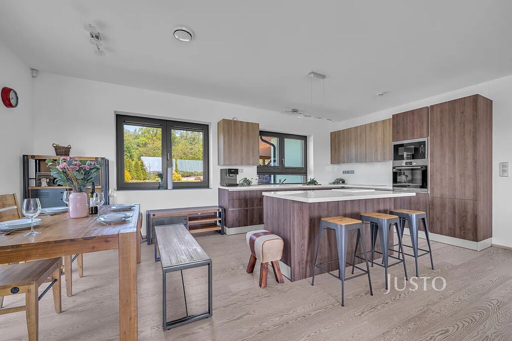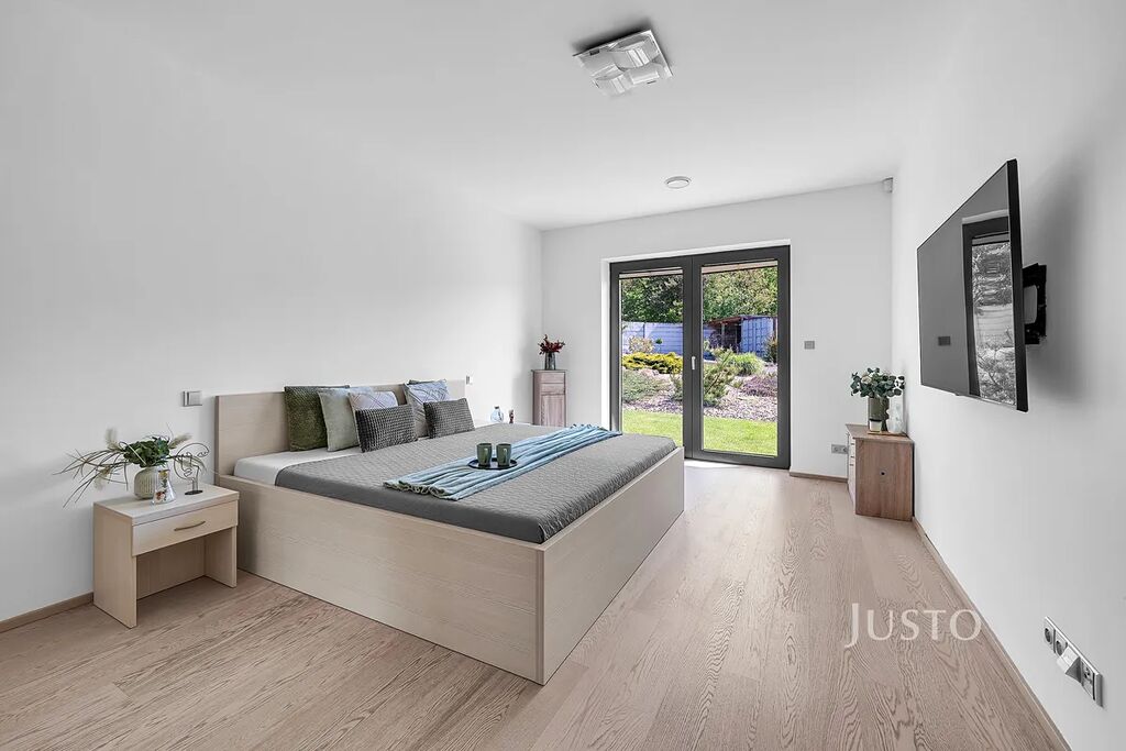 Tato samostatně stojící přízemní vila o užitné ploše 188 m² vznikla v roce 2018 a od první chvíle je promyšleným útočištěm pro rodinu. Praktické dispozice nabízí tři neprůchozí ložnice - ideální pro děti i dospělé, kteří touží po svém vlastním koutku. Všude vás provází přirozené světlo z velkých oken, která zajišťují propojení s venkovní přírodou. Moderní kuchyňská linka na míru je plně vybavená (lednice, myčka, trouba, varná deska). Nechybí ani dvě koupelny, jedna s vanou a sprchovým koutem, druhá se sprchovým koutem. Pro vaši pohodu je k dispozici podlahové vytápění, venkovní rolety a zabezpečovací zařízení.