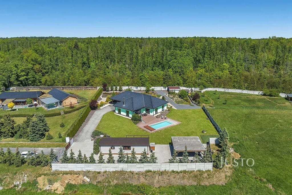 Vila stojí na zpevněné komunikaci v klidné části obce, ale do města Dobříš to máte pár minut autem nebo vlakem. Lokální školy, školky, sportoviště, supermarket Lidl, kavárny i restaurace, zámek Dobříš či Památník Karla Čapka – to vše je v dosahu každodenního života.