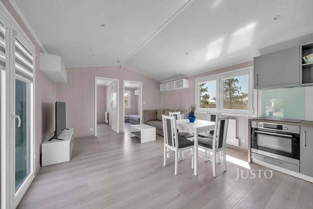 Co se mobilheimu týče, ten je o dispozici 4+kk a je napojen na inženýrské sítě. Lze jej využít pro návštěvy.