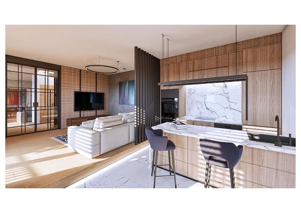 Rodinný dům nabídne dispozici 5+1 či možně 6+1, se zvýšeným důrazem na moderní prvky a luxusní vybavení, které respektuje venkovský styl a přitom klade velký důraz na spojení s přírodou, včetně prosklených prvků a přímých vstupů z obývacího pokoje, kuchyně a jídelny do zahrady. Součástí dalšího užití potencionálu celé nemovitosti je velká garáž s horním patrem a letní / zimní zahrada.
