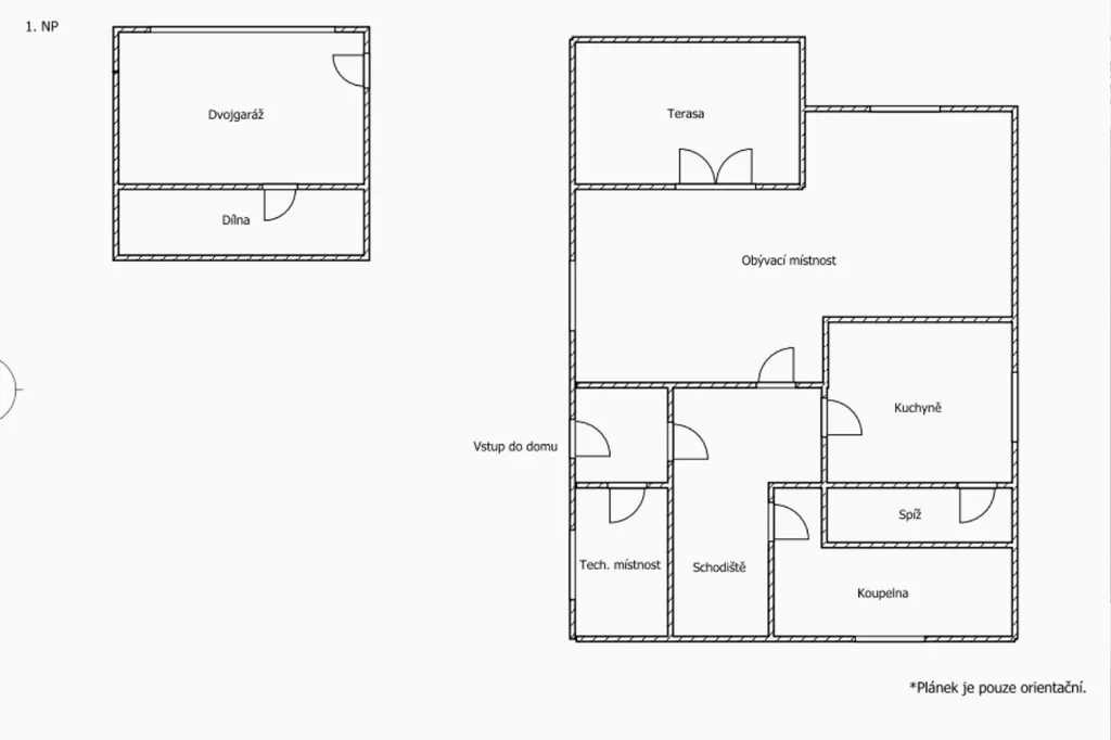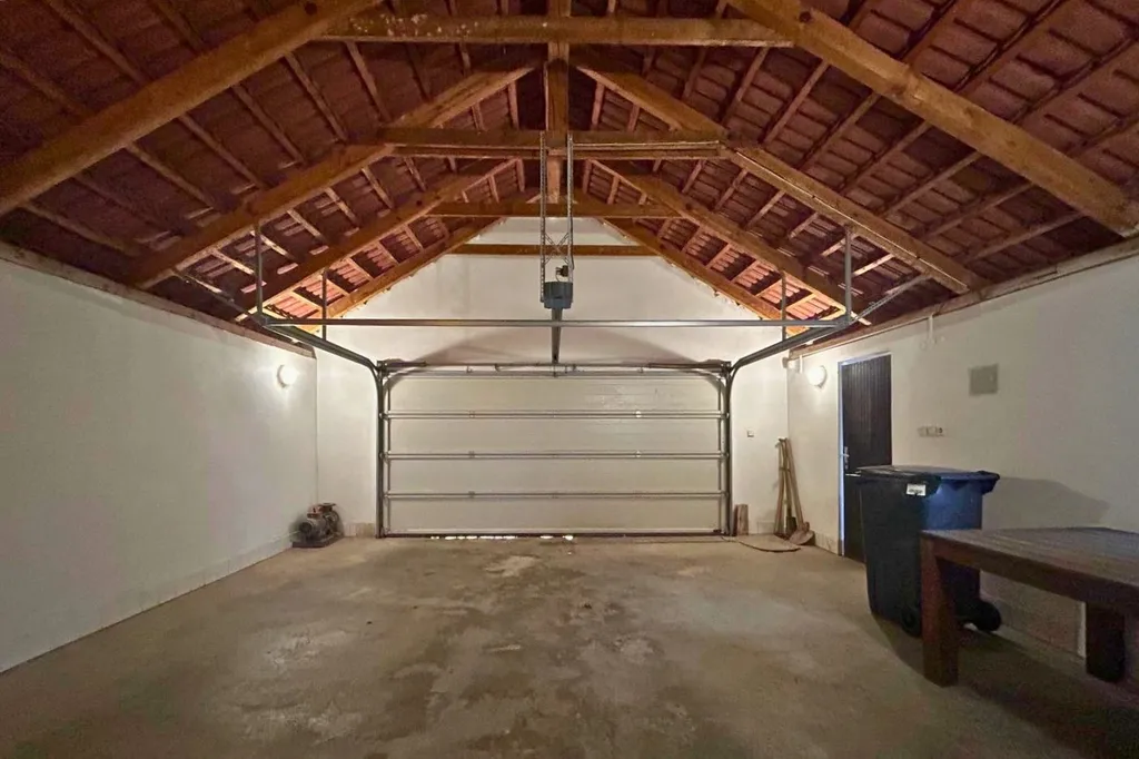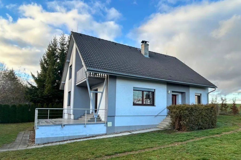 Součástí domu je dvojgaráž o velikosti 36 m² s výškou vrat 2 metry a samostatná dílna o velikosti 12,3 m². Před domem je možné parkovat další dva vozy. Celý pozemek je oplocený a díky vzrostlým stromům poskytuje maximální soukromí. Za garáží se nachází příjemné venkovní posezení, vhodné pro grilování, relaxaci nebo případné umístění zahradního bazénu. Výhled za domem směřuje přímo do přírody, bez přímých sousedů, což podtrhuje celkový klid a atmosféru lokality.
