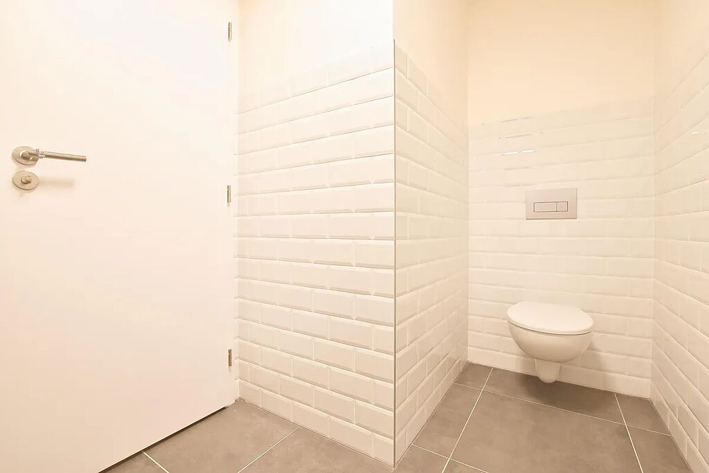 Dominantou bytu je prosklená ložnice v patře, do které vede stylové schodiště. Vedle ložnice se nachází pracovna, která je ideální pro homeoffice či relaxační zónu. V horním patře je rovněž samostatná toaleta, zatímco v dolní části bytu se nachází koupelna se sprchovým koutem a druhou toaletou, což výrazně zvyšuje komfort každodenního užívání.