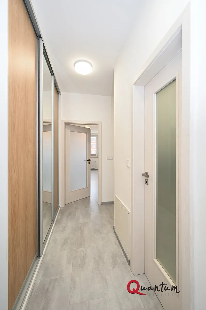 Dispozice: vstupní chodba, obývací pokoj s kuchyňským koutem, ložnice, koupelna se sprchovým koutem a WC, balkon.