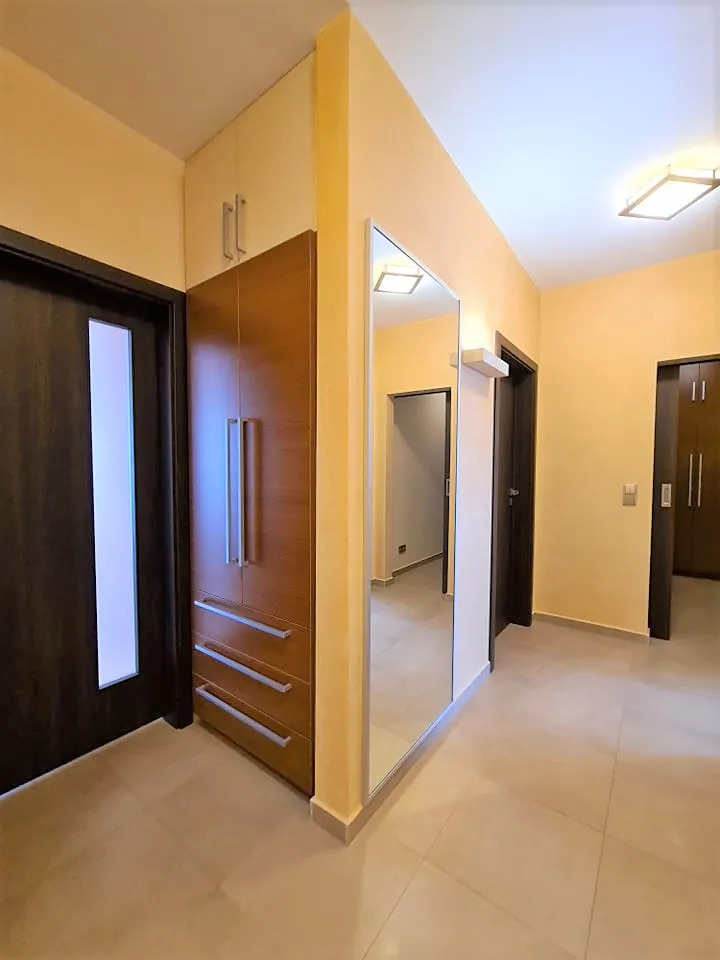 Exkluzivně nabízíme krásný luxusní kompletně vybavený byt s velkou terasou do vnitrobloku domu z roku 2005 v klidné částí pražského Bohdalce. Byt je vybaven luxusní kuchyňskou linkou s vestavěnými spotřebiči MIELE ( horkovzdušná trouba, sklokeramická deska, lednice s mrazákem, kávovar, vinotéka ). Dále vybaveno nábytkem viz fotografie, pračkou MIELE. Dále vybaveno vestavěnými skříněmi v pokojích a samostatná šatna. Venkovní elektrické předokenní žaluzie a mnoho dalšího. Podlahová krytina třívrstvé dřevěné podlahy s vytápěním a velkoformátová dlažba. Dále k bytu patří velké parkovací stání a sklep. K dispozici od 1.Února 2026
