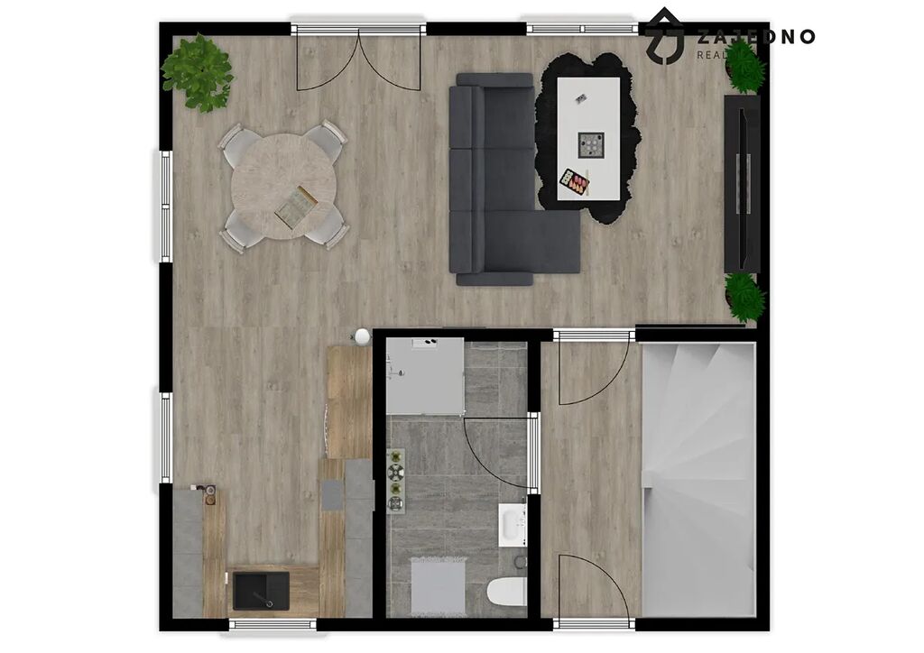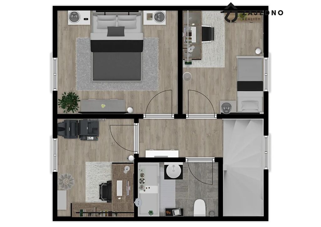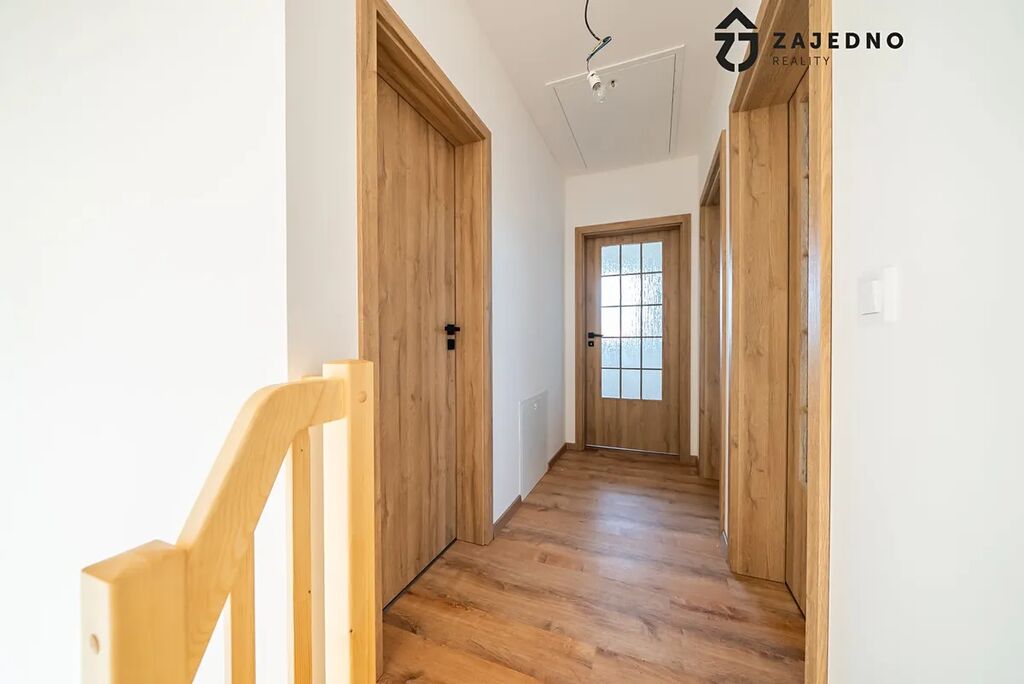 Dovolujeme si Vám představit projekt šesti rodinných domů o dispozici 4+kk v obci Hrubšice u Ivančic. Jedná se o tři dvojdomy, které jsou jednogenerační. Každý rodinný dům je nepodsklepený s obytným podkrovím zastřešený sedlovou střechou. Dům je napojený na veškeré inženýrské sítě. Obvodové konstrukce a vnitřní stěny jsou provedeny jako rámové dřevěné konstrukce v systému HAAS FERTIGBAU. Strop přízemí a podkroví jsou tvořeny dřevěnými stropními nosníky vyplněné tepelnou izolací. Podhled je tvořen sádrokartonem na laťování. Objekt zastřešuje sedlová střecha ze skládaných betonových tašek.