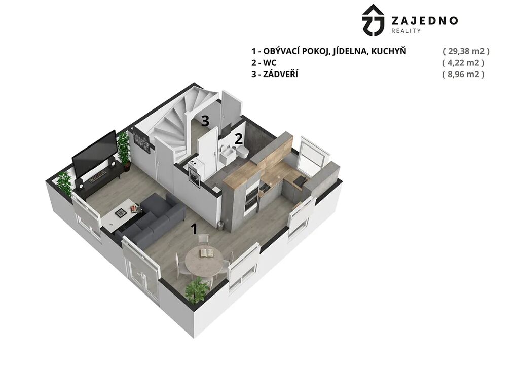 Plocha pozemku je 562 m2 zastavěná plocha jednotlivých domů činí 52 m2 zpevněné plochy dlažba 70 m2 zastavěná část celkem RD + pevná dlažba je 122 m2 a zastavěnost parcely činí 122/562 = 0,22 (22%) koeficient zeleně činí 0,78 = 78%.