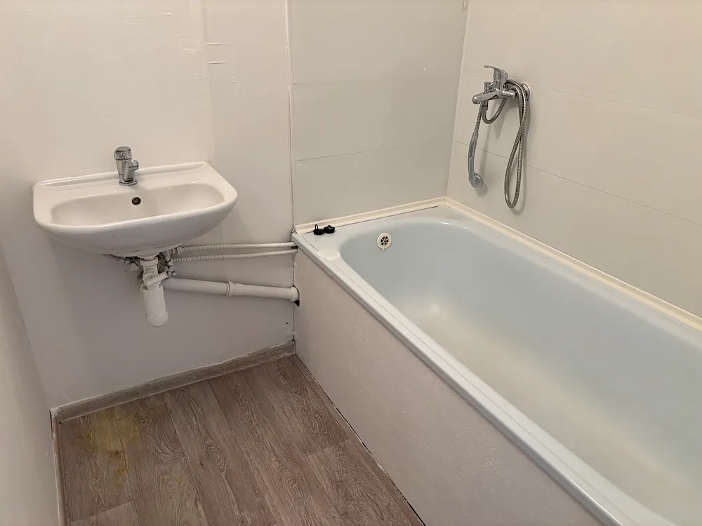 2 samostatné pokoje, kuchyň s balkónem, komora, koupelna s vanou, WC, předsíň.
