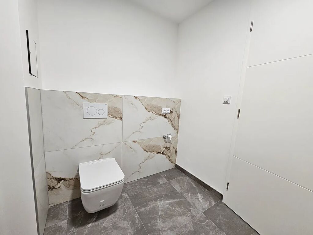V bytě aktuálně probíhají dokončovací práce interiéru podle návrhu architekta. Prostor působí mimořádně vzdušně a nadčasově. Kombinace kvalitně zvolených materiálů a chytrého dispozičního řešení vytváří prostředí, které je nejen esteticky působivé, ale také praktické pro každodenní život. Byt se bude pronajímat částečně zařízený, což výrazně sníží počáteční náklady na nové bydlení. K dispozici bude kuchyňská linka na míru s vestavěnými spotřebiči, pračka, sušička, vestavěné šatní skříně, umyvadlová skříňka, komoda, jídelní stůl a postel.