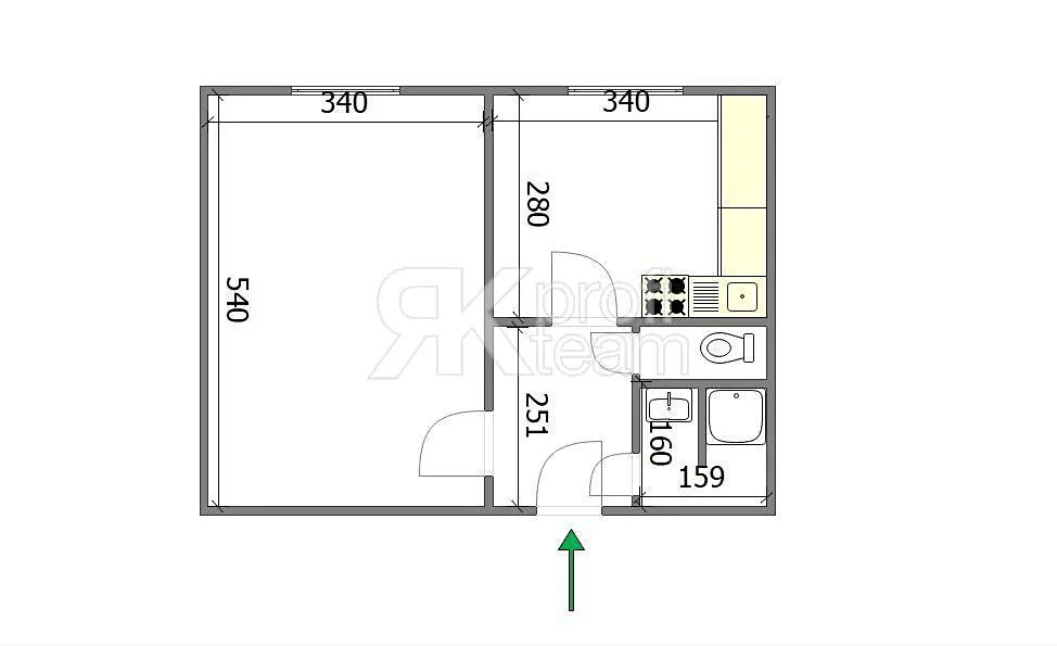 Pokoj o rozměrech 5,4 x 3,4m je vybaven šatní skříní. V předsíni je prostor pro další šatní skříň. Bytové jádro je zděné, koupelna se sprchovým koutem, samostatné WC.