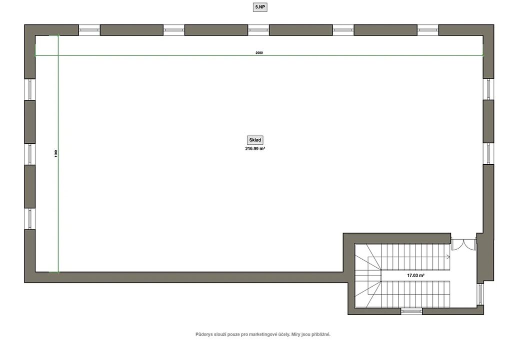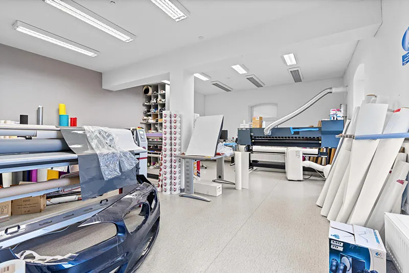 Prostorný sklad s celkovou užitnou plochou 279 m² poskytuje dostatek místa pro materiál, zboží, komponenty či technické vybavení a lehkou výrobu. Budova je situována v bezprostřední blízkosti hlavních objektů.