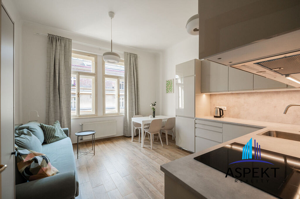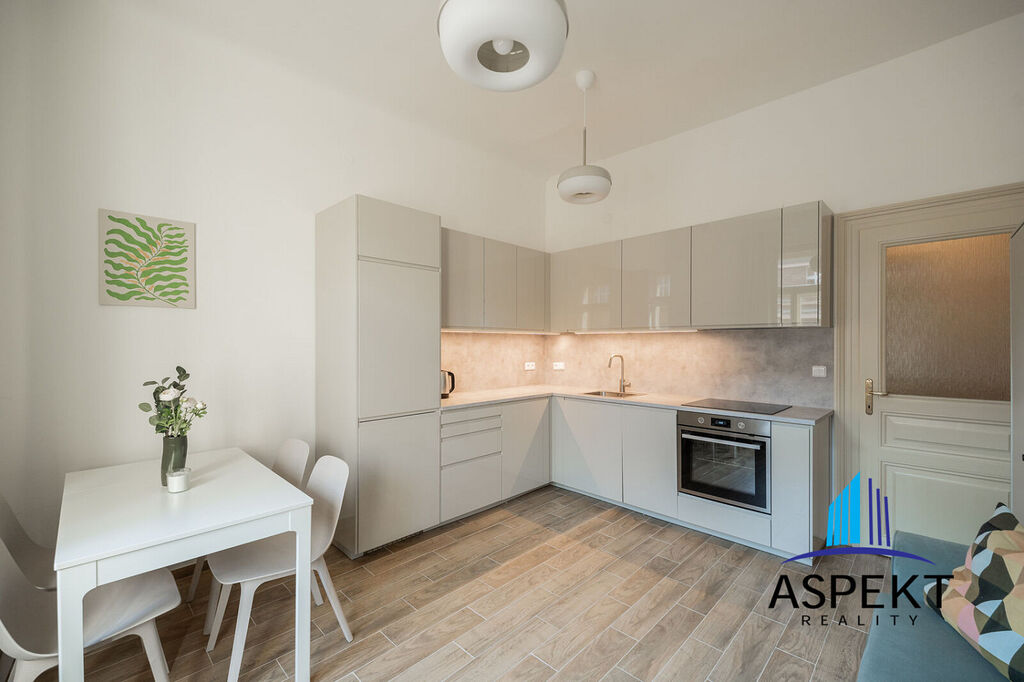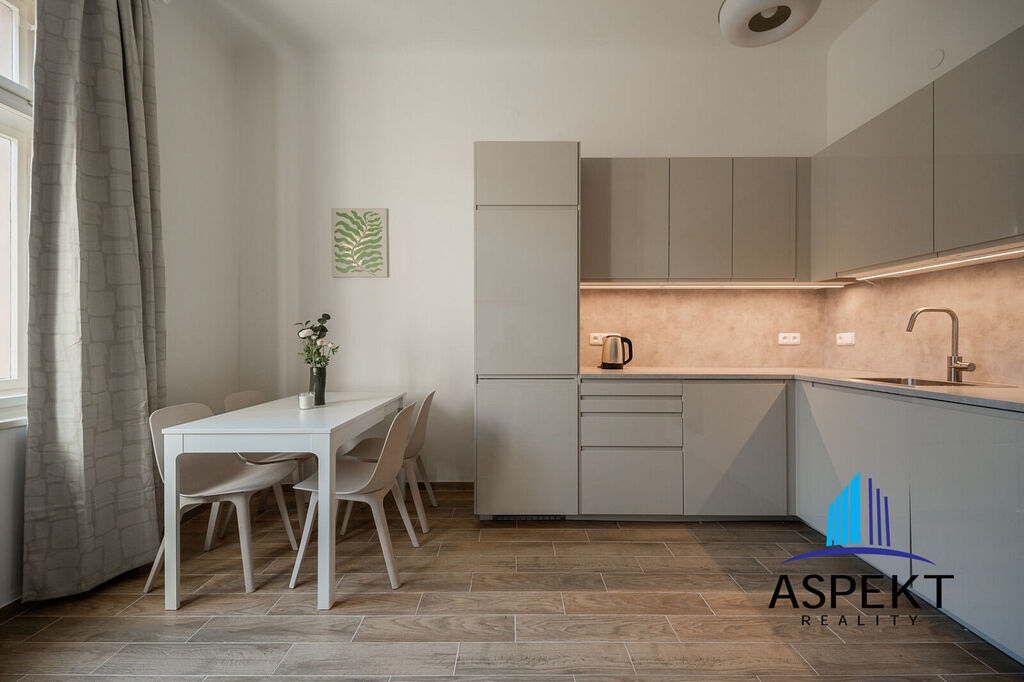 Byt je zařízený a nabízí moderní kuchyňskou linku vybavenou všemi potřebnými spotřebiči, jako jsou lednička, sporák, trouha, myčka a mikrovlnná trouba. Pro pohodlné stravování je k dispozici stůl se židlemi a útulné sofa pro odpočinek. Koupelna je vybavena sprchovým koutem, toaletou a pračkou, což přispívá k komfortnímu bydlení. V ložnici najdete kvalitní postel a prostornou skříň pro úložné potřeby.