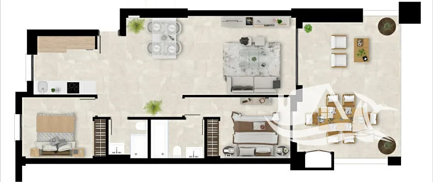 Na slunném pobřeží Costa del Sol vzniká rezidenční projekt, který spojuje moderní architekturu, klidnou atmosféru a příjemnou pěší vzdálenost k pláži. Tento prostorný přízemní apartmán o 83 m² nabízí dvě útulné ložnice, dvě elegantní koupelny a velkou terasu o 29 m² orientovanou na západ, kde večery patří západům slunce a pomalému středomořskému tempu.